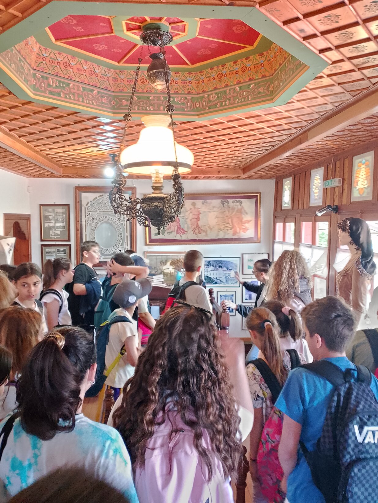 Στόχος της επίσκεψης σε αυτό τον ιστορικό οικισμό της Θεσσαλίας ήταν να δουν τα παιδιά από κοντά τον Πρώτο Παγκόσμιο Εμπορικό Συνεταιρισμό που ιδρύθηκε στα Αμπελάκια κατά την περίοδο της Τουρκοκρατίας, το Αρχοντικό του Γεωργίου Μαύρου (Σβαρτς), σημερινό Μουσείο Σβαρτς και να ξεναγηθούν στο Λαογραφικό Μουσείο με τα πλούσια εκθέματα. Στο τελευταίο, τα παιδιά είδαν από κοντά αντικείμενα οικιακής χρήσης της εποχής, έπιπλα και διακοσμητικά, τοπικές φορεσιές και προικιά, καθώς επίσης και έγγραφα παλαιότερων εποχών, στο Αρχοντικό Σβαρτς θαύμασαν την αρχιτεκτονική αλλά και τη διακόσμηση της εποχής, ενώ περπάτησαν μέσα στο κέντρο της εξέλιξης του πρώτου παγκοσμίως εμπορικού συνεταιρισμού που αξιοποίησε το φυτό ριζάρι για τη βαφή των νημάτων της εποχής με κόκκινο χρώμα. Τα παιδιά, εκτός από τις ενδιαφέρουσες ξεναγήσεις, είχαν την ευκαιρία για στιγμές ξεγνοιασιάς και παιχνιδιού στην πλατεία και να απολαύσουν τη φύση.