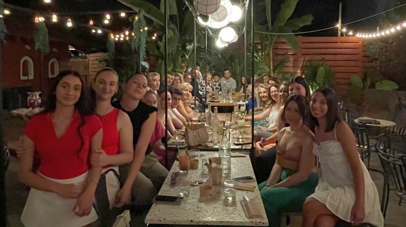 Έπαιξαν οι μαθητές και μαθήτριες: Καραδήμου Κων/να (Λίλα), Παπαευσταθίου Γιώργος (Αλέκος), Κυρατζής Κων/νος (Θωμάς), Καστάνη Όλγα (Αθηνά), Χάλαρη Άννα (Βίκυ), Στατήρας Νικόλαος (Ναύαρχος), Στεφανή Άλκηστις (Λουκία και κα Μακράκη), Στατήρας Αλέξανδρος (Σταύρος και καθηγητής), Χάλαρη Θεοδώρα (Ντιάνα), Τουραλιά Ειρήνη (Υπάλληλος), Καλόσι Μαρία (υπάλληλος), Πρεμέτη Ελένη (Διδώ), Πατσιαλίδης Παναγιώτης (κυρ-Βασίλης), Μολόβ Γιάννης (Γιάγκος και σερβιτόρος), Καλαϊτζόγλου Κων/νος (μπάρμαν), Βαζούρα Παναγιώτα, Πούλιος Απόστολος, Σιαμούρης Γεώργιος (χορευτές).