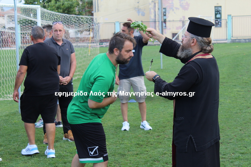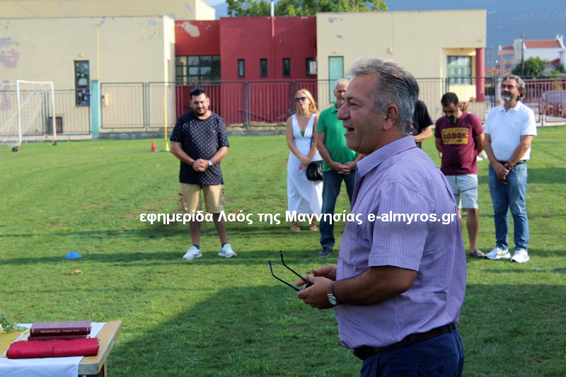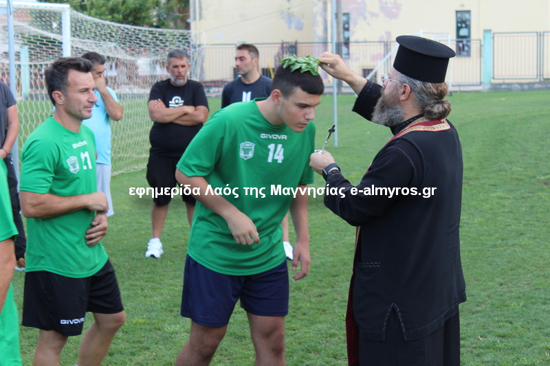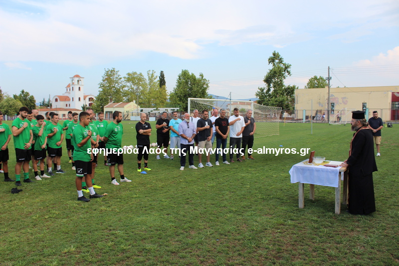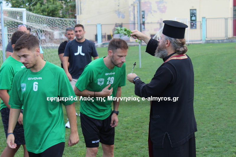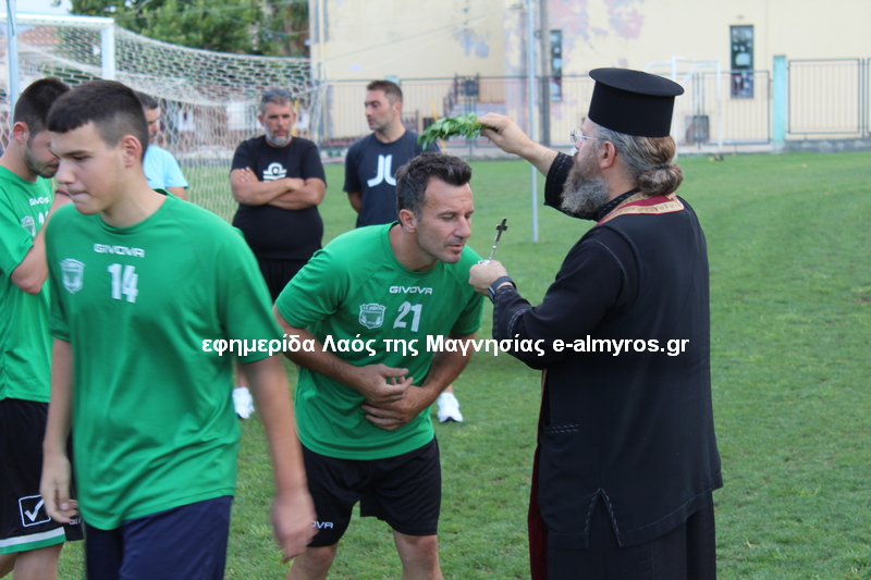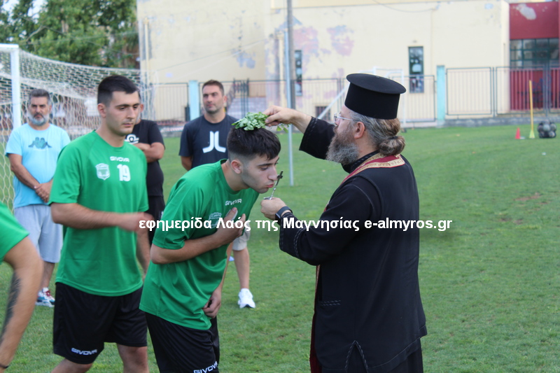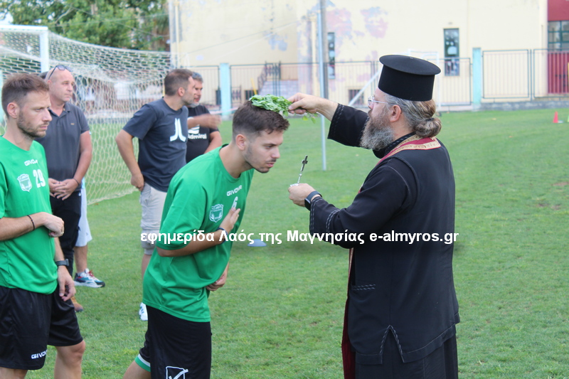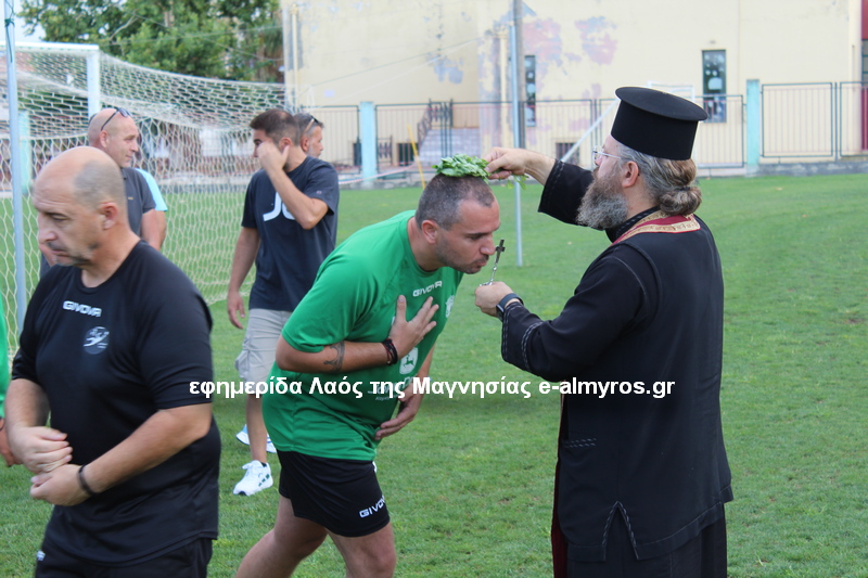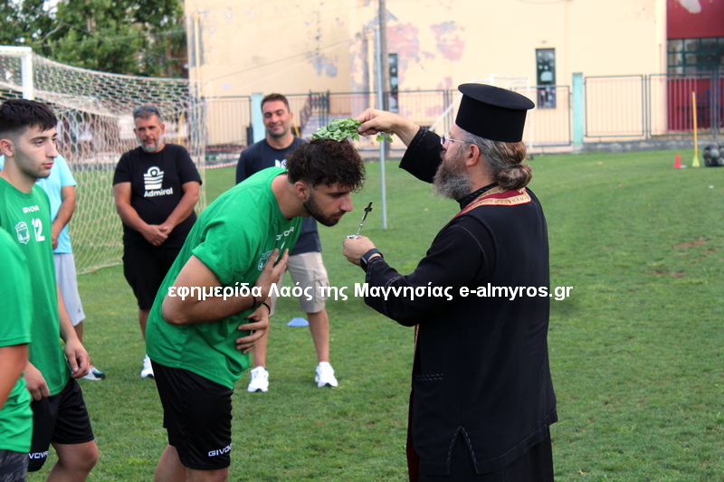 Ο πατέρας Ευστάθιος Βαρβαρέλης έδωσε την ευλογία του σε διοίκηση και ποδοσφαιριστές ζητώντας τους να έχουν ενότητα, ομόνοια κι αγάπη στο γήπεδο αλλά κι εκτός αγωνιστικών χώρων. Σύντομο χαιρετισμό απηύθυνε ο Θεματικός Αντιπεριφερειάρχης Τεχνικών Έργων Θεσσαλίας Απόστολος Καναβός ο οποίος βρίσκεται κοντά στον χώρο του αθλητισμού και θυμήθηκε ότι πριν λίγα χρόνια ο γιος του Θανάσης έπαιξε για την ομάδα της Δήμητρας, ο Αντιδήμαρχος Αθλητισμού Δήμου Αλμυρού Γιάννης Βούλγαρης και ο πρόεδρος της Κοινότητας Ευξεινούπολης Μηνάς Παπαγιάννης. Όλοι συνεχάρησαν τη διοίκηση για την άνοδο στη μεγάλη κατηγορία, δήλωσαν ότι στηρίζουν τις προσπάθειες των παραγόντων του ιστορικού συλλόγου κι ευχήθηκαν καλή σεζόν χωρίς τραυματισμούς… Παρόντες επίσης αρκετοί φίλαθλοι της Δήμητρας, παλιοί παράγοντες κι άνθρωποι που είναι κοντά στο σωματείο.
