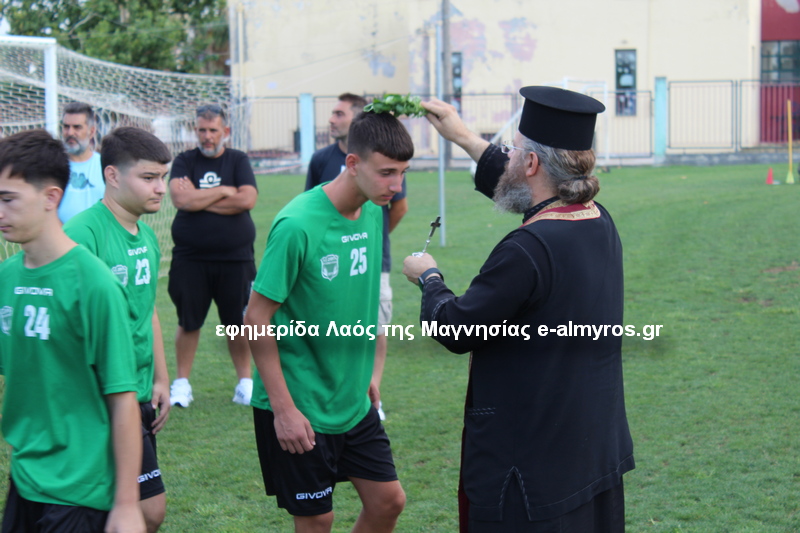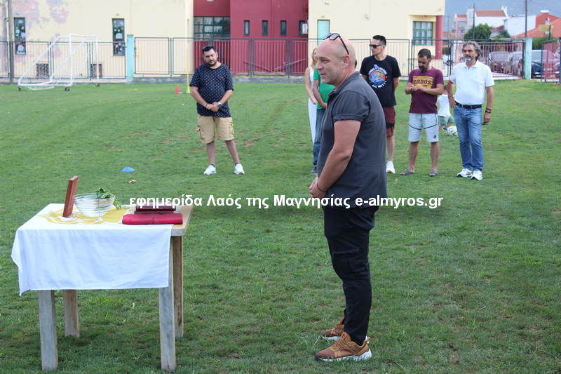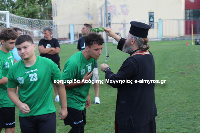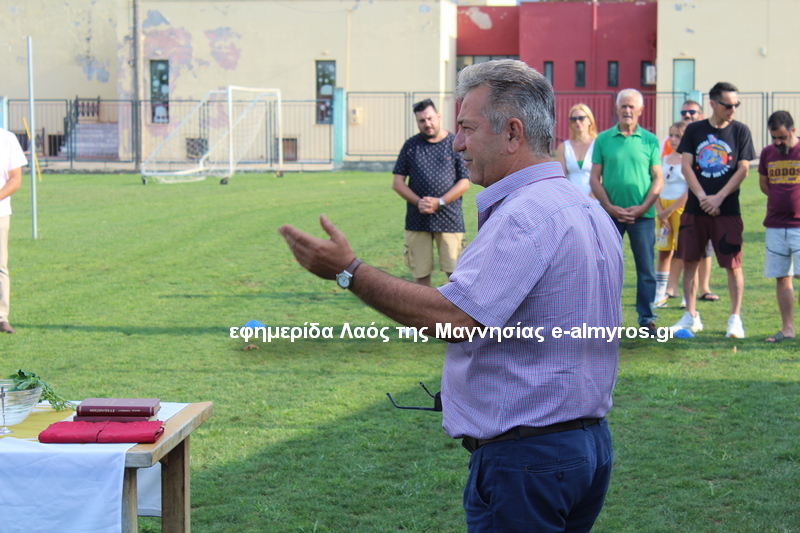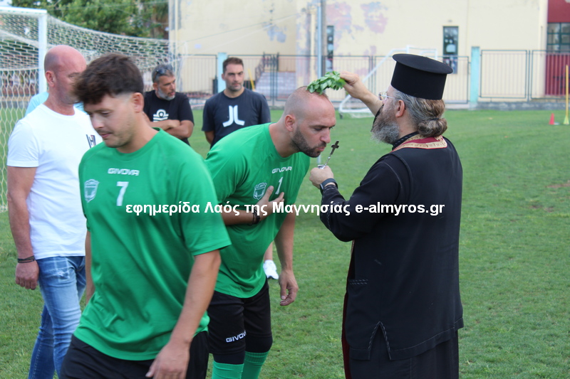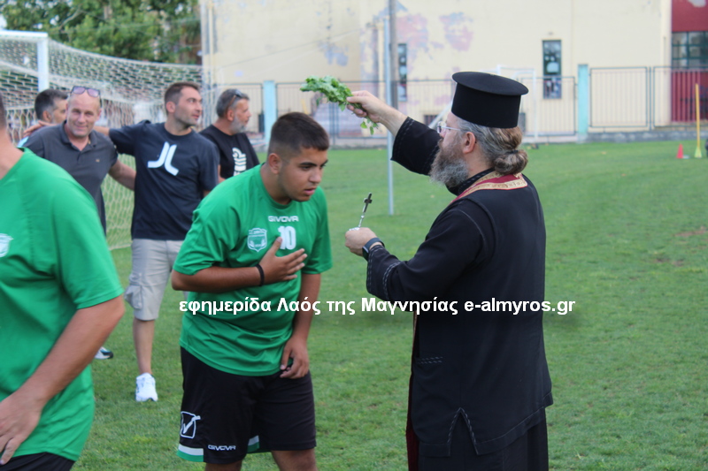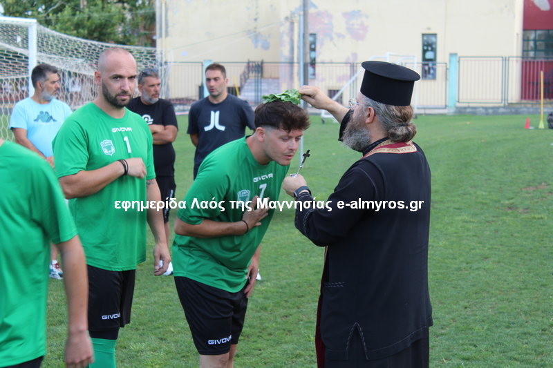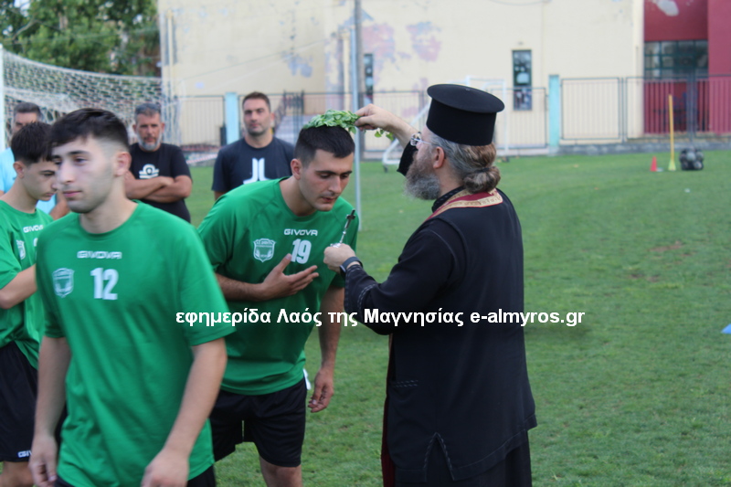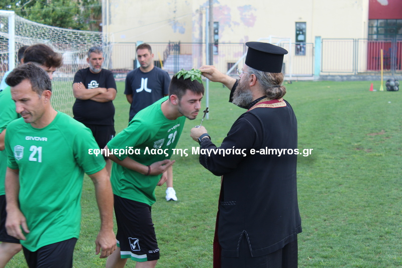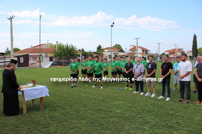Ο πατέρας Ευστάθιος Βαρβαρέλης έδωσε την ευλογία του σε διοίκηση και ποδοσφαιριστές ζητώντας τους να έχουν ενότητα, ομόνοια κι αγάπη στο γήπεδο αλλά κι εκτός αγωνιστικών χώρων. Σύντομο χαιρετισμό απηύθυνε ο Θεματικός Αντιπεριφερειάρχης Τεχνικών Έργων Θεσσαλίας Απόστολος Καναβός ο οποίος βρίσκεται κοντά στον χώρο του αθλητισμού και θυμήθηκε ότι πριν λίγα χρόνια ο γιος του Θανάσης έπαιξε για την ομάδα της Δήμητρας, ο Αντιδήμαρχος Αθλητισμού Δήμου Αλμυρού Γιάννης Βούλγαρης και ο πρόεδρος της Κοινότητας Ευξεινούπολης Μηνάς Παπαγιάννης. Όλοι συνεχάρησαν τη διοίκηση για την άνοδο στη μεγάλη κατηγορία, δήλωσαν ότι στηρίζουν τις προσπάθειες των παραγόντων του ιστορικού συλλόγου κι ευχήθηκαν καλή σεζόν χωρίς τραυματισμούς… Παρόντες επίσης αρκετοί φίλαθλοι της Δήμητρας, παλιοί παράγοντες κι άνθρωποι που είναι κοντά στο σωματείο.