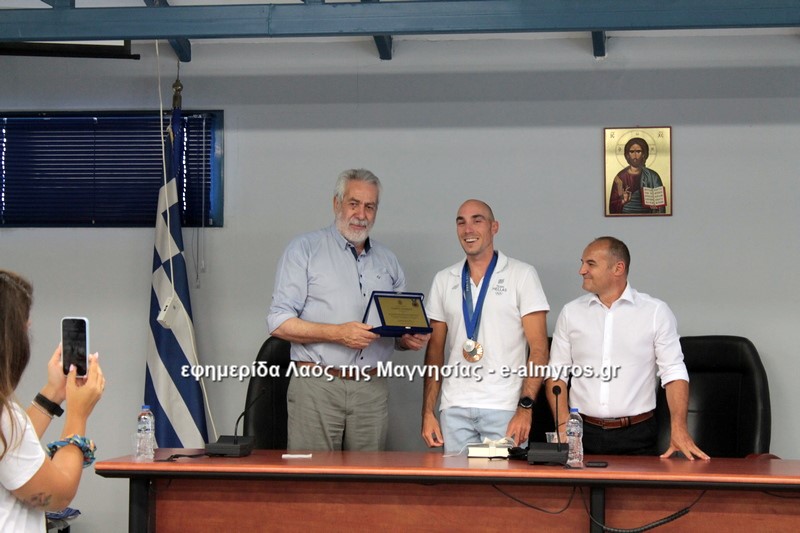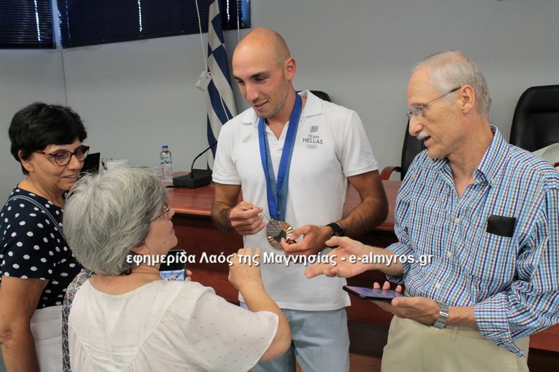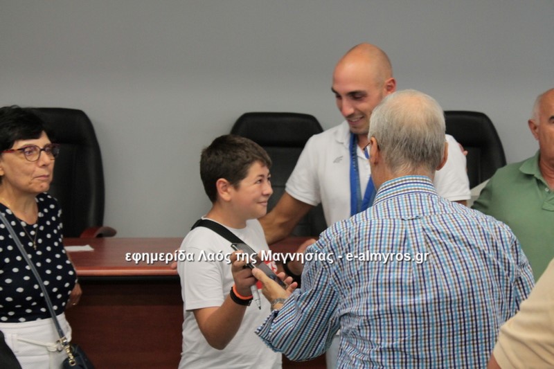 Συγκίνηση και περηφάνεια… Αυτές οι δύο λέξεις αποτυπώνουν καλύτερα τα αισθήματα όλων όσων παρευρέθηκαν σήμερα το μεσημέρι, Παρασκευή 30 Αυγούστου, στην εκδήλωση προς τιμήν του Ολυμπιονίκη μας Αντώνη Παπακωνσταντίνου στην αίθουσα του δημοτικού συμβουλίου Αλμυρού. Και δεν ήταν λίγοι αυτοί… Σύσσωμη η δημοτική Αρχή, δημοτικοί σύμβουλοι, συγγενείς και φίλοι του Αντώνη από τον Πτελεό και ιδιαίτερη αναφορά θα κάνουμε στη μητέρα, τον παππού και τη γιαγιά του που δάκρυσαν από χαρά…