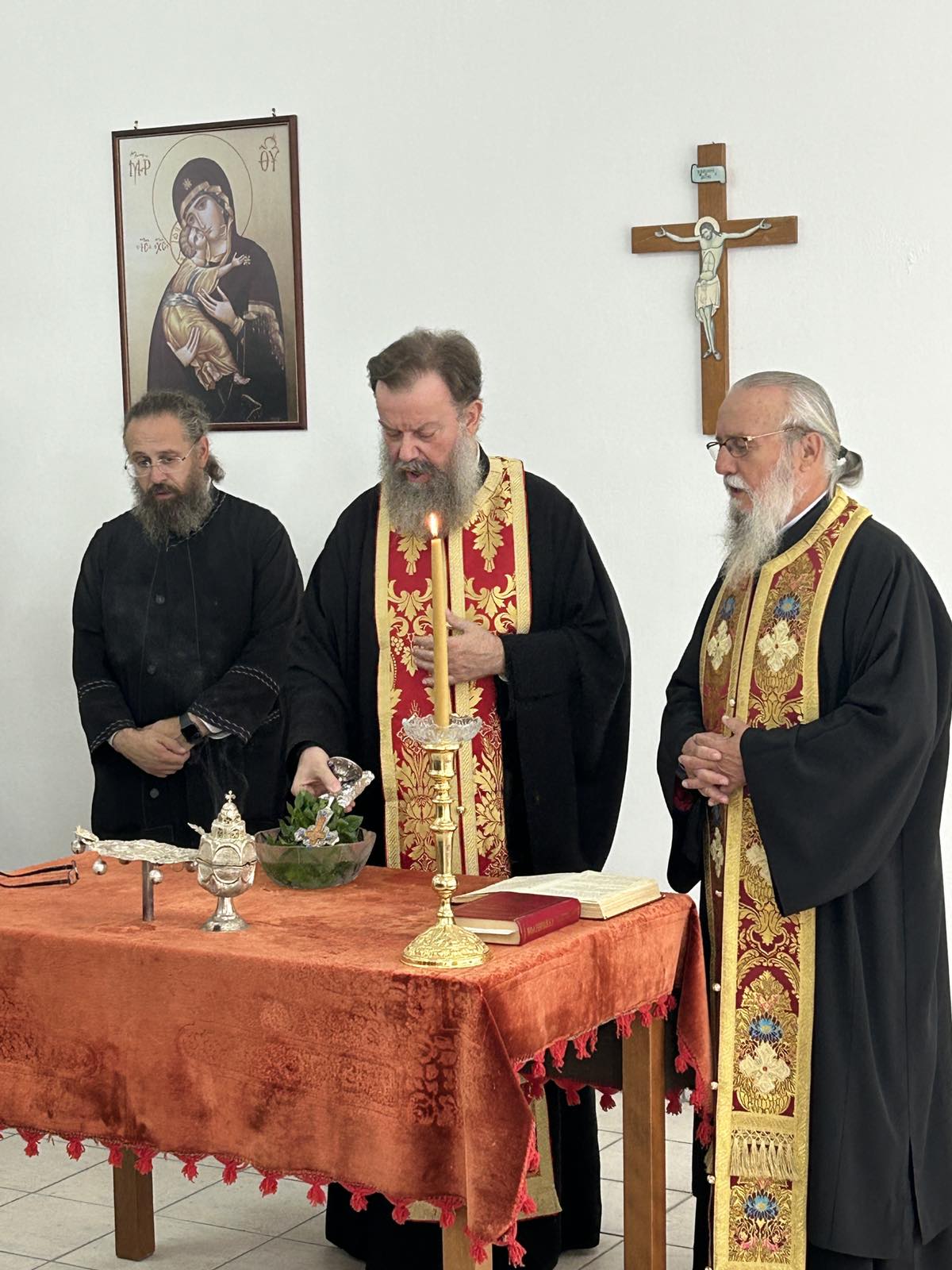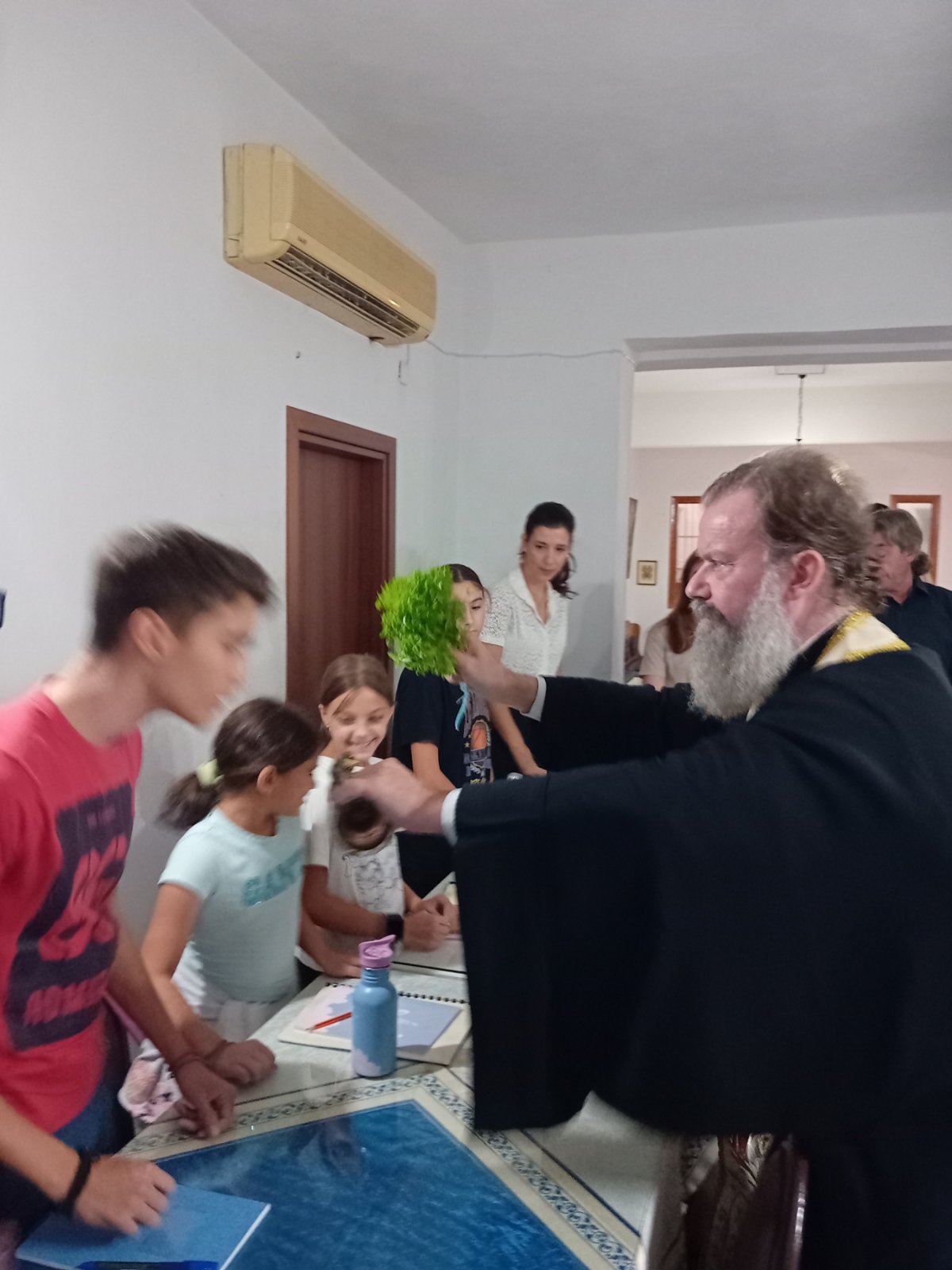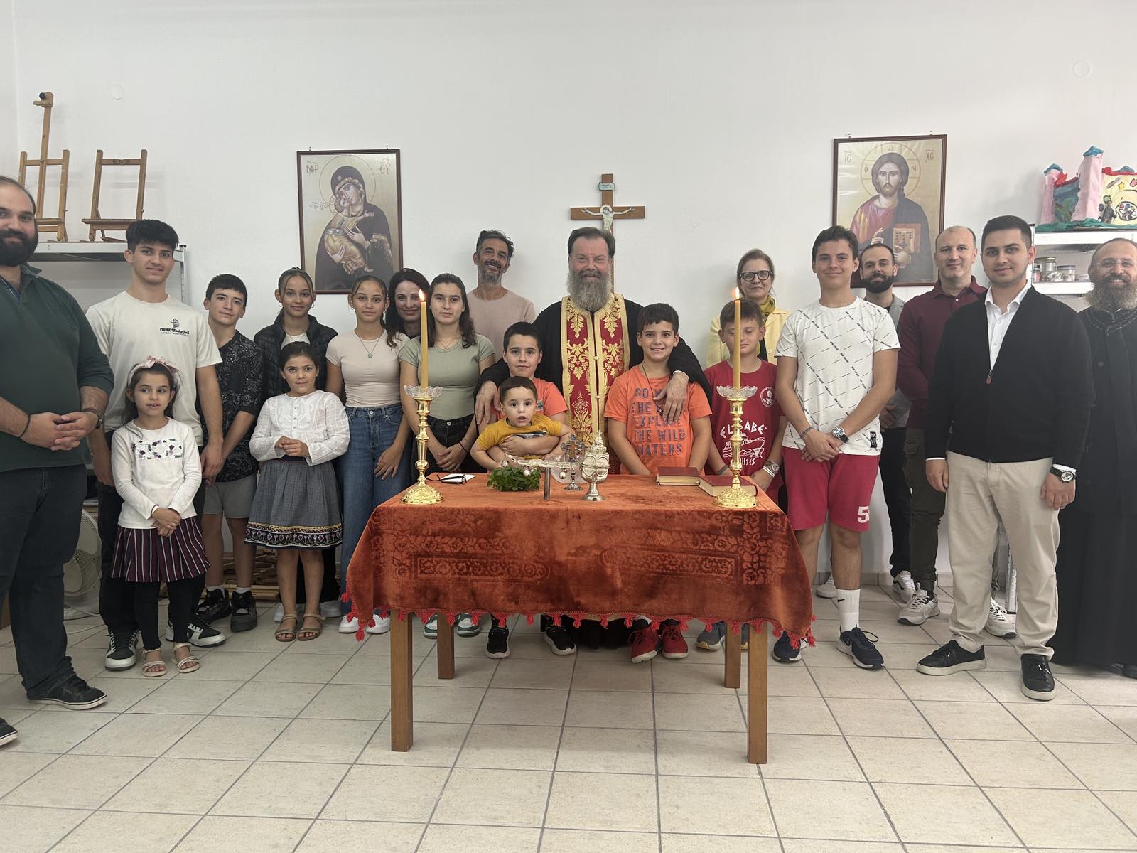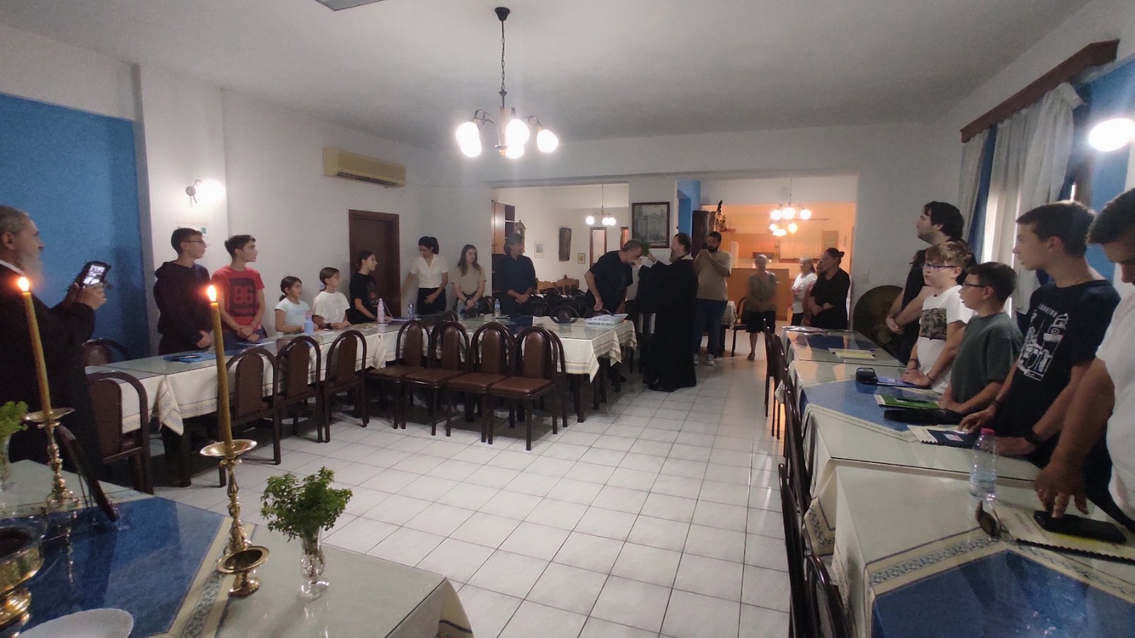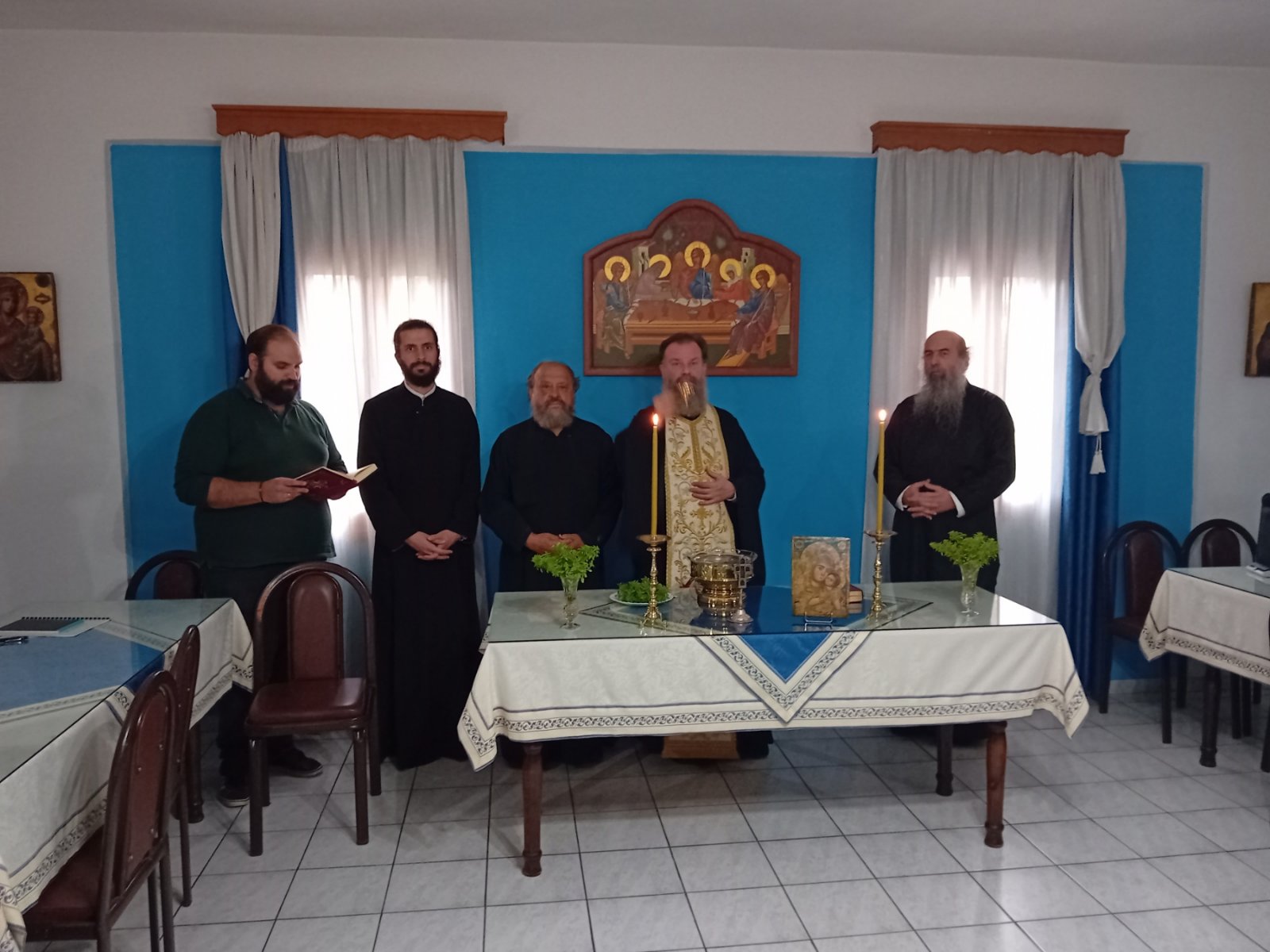 Τον Αγιασμό τέλεσε την Τετάρτη 18/9 ο Δ/ντής της Σχολής Αρχιμ. Επιφάνιος Οικονόμου και παρέστησαν οι Ιερείς της Νέας Αγχιάλου και οι νέοι μαθητές προς τους οποίους ο π. Επιφάνιος μετέφερε τις θερμές ευχές του Ποιμενάρχου μας και την χαρά και ευαρέσκειά του για την ίδρυση του Παραρτήματος. Ο Δ/ντής της Σχολής καλωσόρισε τους μαθητές και συνεχάρη τον π. Αθανάσιο για την πρωτοβουλία, ενώ κάλεσε όλους να στηρίξουν και αυτό το έργο, τους μαθητές να επιδεικνύουν συνέπεια και επιμέλεια στις σπουδές τους, ενώ ανέλυσε το έργο της Σχολής και τις προοπτικές που ανοίγονται για τους σπουδαστές της ψαλτικής τέχνης. Αναφέρθηκε στην ιερότητα και στην παράδοση της Βυζαντινής Μουσικής, καθώς και στην ιστορία της Σχολής μας, από την οποία προήλθαν πλήθος κορυφαίων Ιεροψαλτών και δασκάλων, που κοσμούν τα ιεροψαλτικά αναλόγια στην Ελλάδα και στο εξωτερικό.