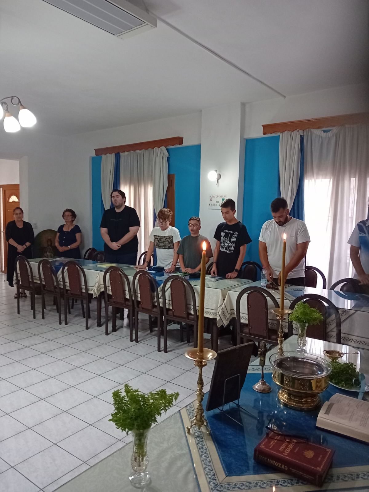 Νωρίτερα ο Δ/ντής της Σχολής τέλεσε τον Αγιασμό ενάρξεως της νέας χρονιάς στο Παράρτημα της Σχολής στον Αλμυρό, παρουσία του Αρχιερατικού Επιτρόπου Αλμυρού Πρωτ. Γεωργίου Μπέκα, των καθηγητών Πρωτ. Ευσταθίου Βαρβαρέλη και Ευθυμίου Παπαγεωργίου και των μαθητών. Ο π. Επιφάνιος μετέφερε προς όλους τις πατρικές ευλογίες του Σεβ. κ. Ιγνατίου και ευχήθηκε καλή και ευλογημένη χρονιά.