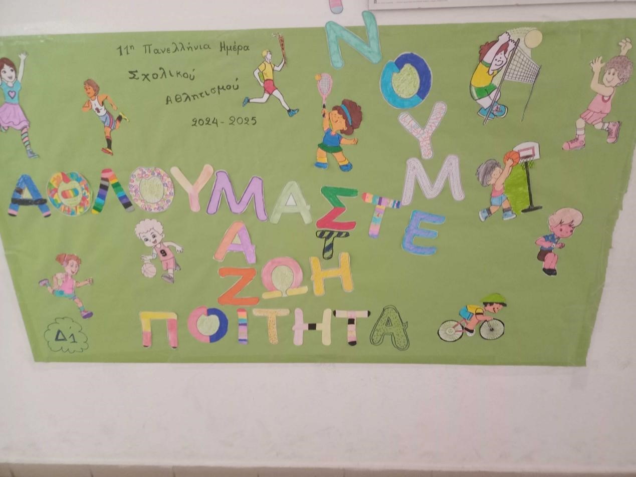 - Δημιουργία θεματικής αφίσας για την ημέρα του αθλητισμού και έκθεση των αφισών σε κοινό χώρο του σχολείου.