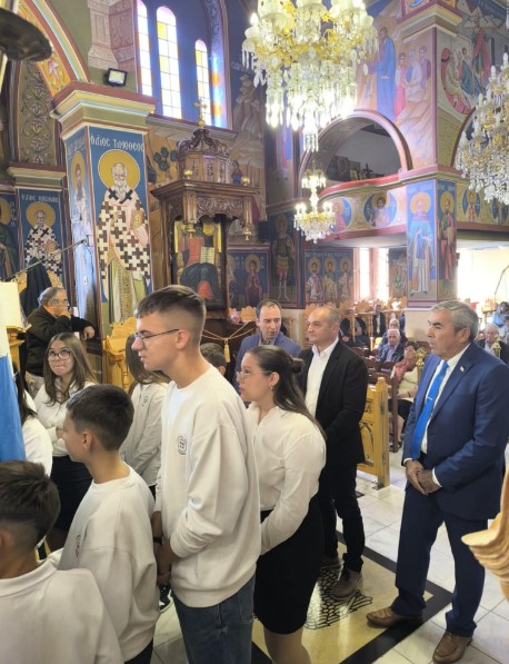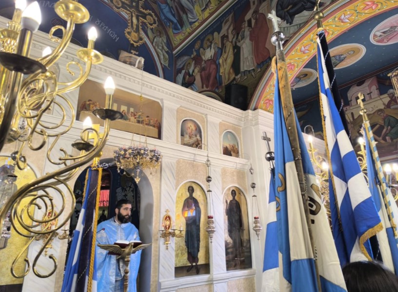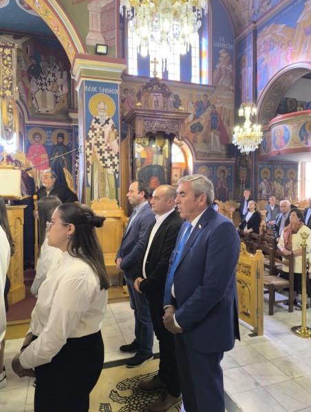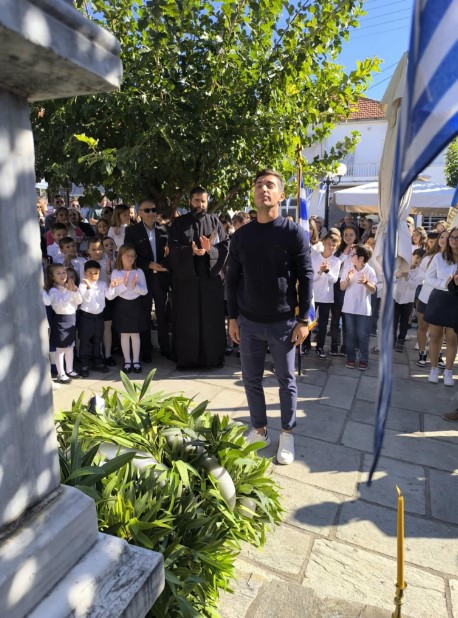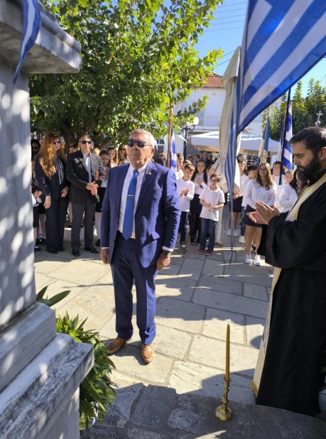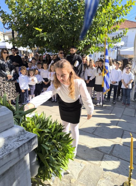 Μετά τη δοξολογία στον Ιερό Ναό Κοιμήσεως της Θεοτόκου και την επιμνημόσυνη δέηση, ακολούθησε η κατάθεση στεφάνων στο Ηρώον από τον Αντιδήμαρχο Κώστα Μπουκοβάλα, τον πρόεδρο του τοπικού συμβουλίου Αθανάσιο Νεοχωρίτη, τους εκπροσώπους των τοπικών συλλόγων και των σχολείων.