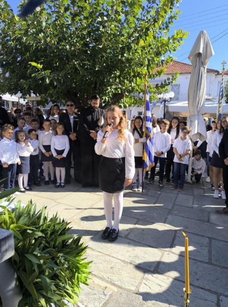 Πραγματοποιήθηκε η παρέλαση των μαθητών και έπειτα στην κεντρική πλατεία, η Διευθύντρια του Γυμνασίου Αικατερίνη Σαλάτα εκφώνησε τον πανηγυρικό της ημέρας και οι εκδηλώσεις έκλεισαν με τα ποιήματα των μικρών μαθητών του Νηπιαγωγείου και του Δημοτικού.