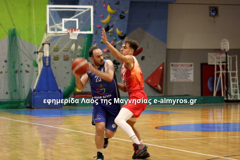 Με πόντους του νεαρού Σόφλιου ο Ερμής ισοφάρισε και προσπέρασε με επιμέρους σκορ 1-8, όμως ο Γαλανάκης με ωραία προσπάθεια διαμόρφωσε το 18-19. Η ομάδα της Αγιάς διατηρούσε μικρό προβάδισμα, αλλά ο Βαλεντίνος Κέτουλας έξω από τα 6,75 έδωσε επιθετική ανάσα στους γηπεδούχους (21-22). Ακολούθησαν τρίποντα από Σόφλιο και Συνάζο, ο Μπούντης είχε γκολ-φάουλ σε ασίστ Β. Κέτουλα για το 29-26, ωστόσο ο Ερμής βρήκε σκορ με ελεύθερες βολές. Γαλανάκης και Αραμπατζής έδωσαν αέρα 5 πόντων στους Τιτάνες και η διαφορά ανέβηκε με φόλοου του Β. Κέτουλα. Σκορ ημιχρόνου 35-28 με το σερί 6-0 των παικτών του Θανάση Φλεβάρη στις τελευταίες φάσεις.