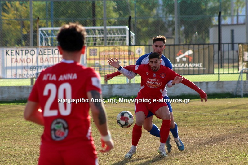 Ισόπαλο 1-1 το ντέρμπι του Πυράσου με την Αγία Άννα στο γήπεδο της Νέας Αγχιάλου, σε αγώνα με μεγάλο ενδιαφέρον που ο αέρας έπαιξε τον ρόλο του και δυσκόλεψε τις προσπάθειες των ποδοσφαιριστών.