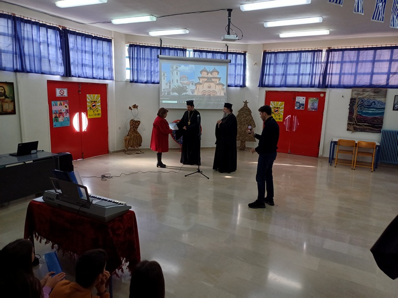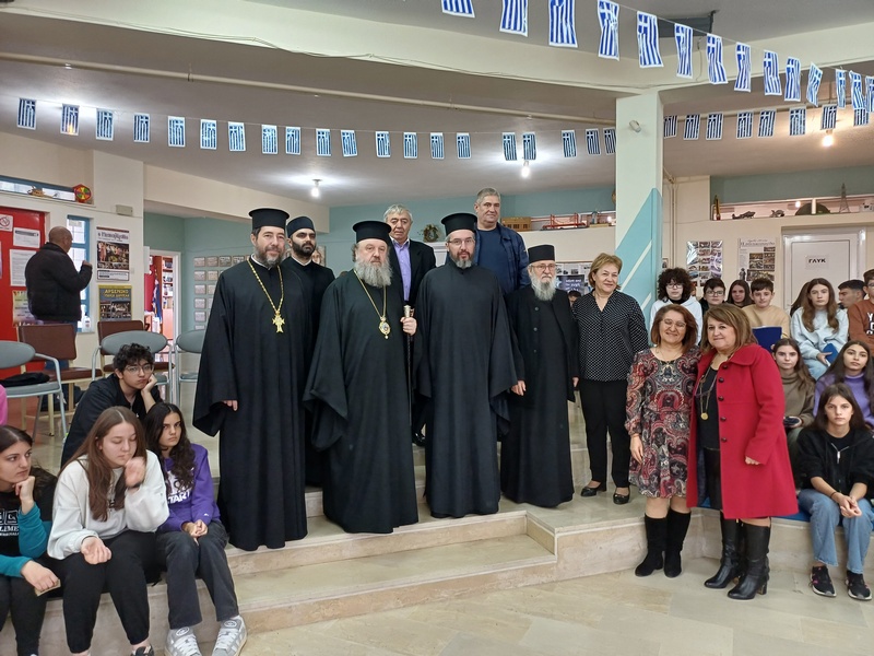 Την Παρασκευή 22 Νοεμβρίου είχαμε την τιμή να δεχθούμε στο Γυμνάσιο – Λυκειακές Τάξεις Ευξεινούπολης την επίσκεψη του Θεοφιλεστάτου Επισκόπου Πράχοβας κ.Τιμοθέου, καθώς και των προϊσταμένων Ιερέων των Ναών Ευαγγελισμού της Θεοτόκου και Αγίου Συμεών Βουκουρεστίου κ.κ. Δαρίκα και Τιμπάου, παρόντων των εφημερίων του Ιερού Ναού της Κοιμήσεως της Θεοτόκου Ευξεινούπολης, του Πανοσιολογιοτάτου Πατέρα  Γεωργίου Γιαννιού και του Αρχιερατικού Επιτρόπου  Αλμυρού Πατέρα Γεωργίου Μπέκα.
