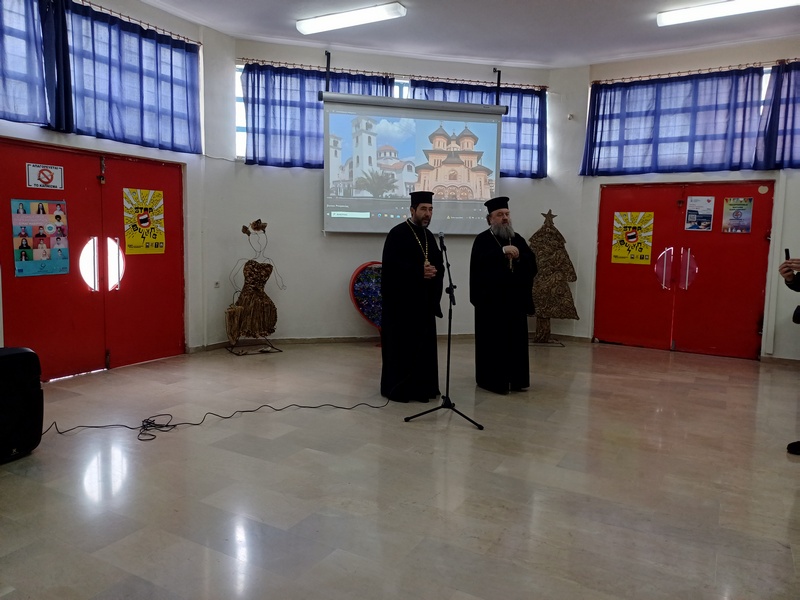 Μετά το καλωσόρισμα από τη διευθύντρια κ. Μαρία Σταυραντώνη, ακούστηκαν τραγούδια και κάλαντα των Χριστουγέννων και της Πρωτοχρονιάς από τη χορωδία του σχολείου μας υπό την καθοδήγηση  της καθηγήτριας της Μουσικής κ. Άννας Κούτσικου. Κατόπιν προβλήθηκε ένα βίντεο με τίτλο «Γέφυρες Πίστης!!! Η Σύμπραξη των Εκκλησιών Ελλάδας και Ρουμανίας μέσα από τα Μάτια των Μαθητών», το οποίο επιμελήθηκε μία ομάδα μαθητών μαζί με την καθηγήτρια των Θρησκευτικών κ. Μάρθα Δρόσου (https://youtu.be/bMGV3HWjN5c).