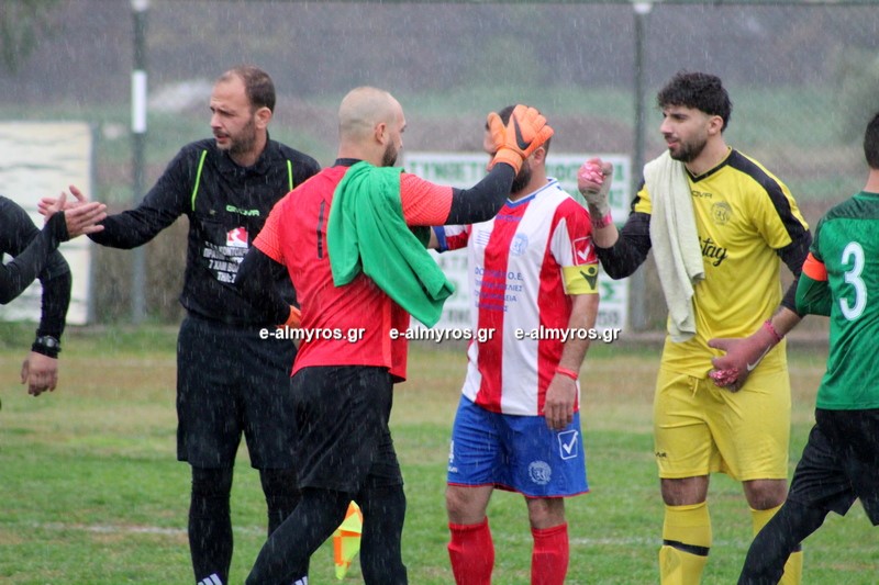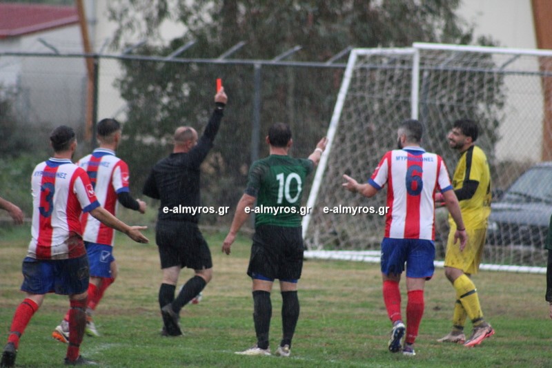 Χωρίς γκολ το ματς Μυρμηδόνες-Δήμητρα που έγινε υπό συνεχή βροχόπτωση σε βαρύ αγωνιστικό χώρο και τους γηπεδούχους να παίζουν για 75 λεπτά με παίκτη λιγότερο!