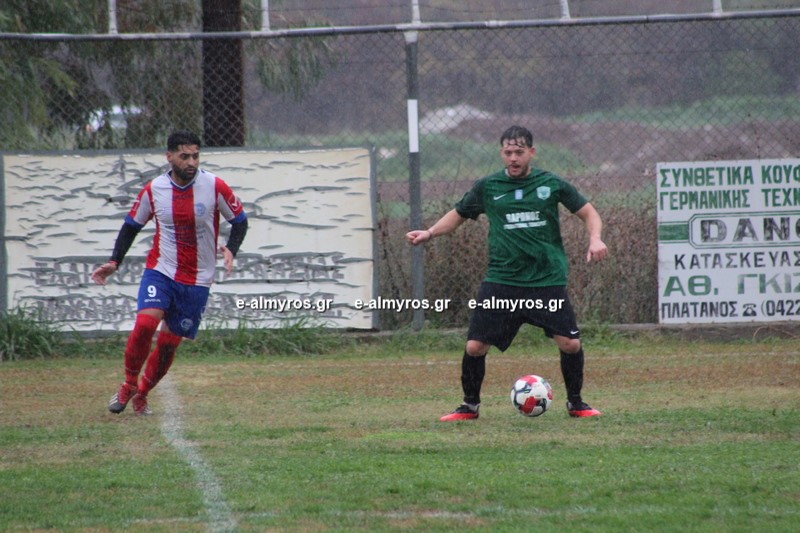 Στην επανάληψη το τερέν έγινε ακόμη πιο δύσκολο αφού είχε πατηθεί και η βροχή δεν έλεγε να σταματήσει… Στο 59′ οι γηπεδούχοι ζήτησαν πέναλτι σε μαρκάρισμα πάνω στον Ρεφουγιάτι, στο 64′ μακρινό σουτ του Τσόγκα με τον τερματοφύλακα μακριά από την εστία πέρασε άουτ σε καλή ευκαιρία για τον σύλλογο του Πλατάνου. Ακόμη καλύτερη ευκαιρία στο 69′ όταν συρτό σουτ του Τσόγκα χτύπησε στο δεξί κάθετο δοκάρι, μετά στην πλάτη του Χαλάτση κι έφυγε πλάγια, ο ίδιος παίκτης των Μυρμηδόνων την γύρισε στον Καραδήμα ο οποίος από ευνοϊκό σημείο σούταρε πάνω στον γκολκίπερ της φιλοξενούμενης ομάδας. Αμέσως μετά ήταν η σειρά των “πρασίνων” να ζητήσουν πέναλτι. Ωραία φαλτσαριστό σουτ του Κοντοβά έφυγε λίγο άουτ ένα τέταρτο πριν τη λήξη.
