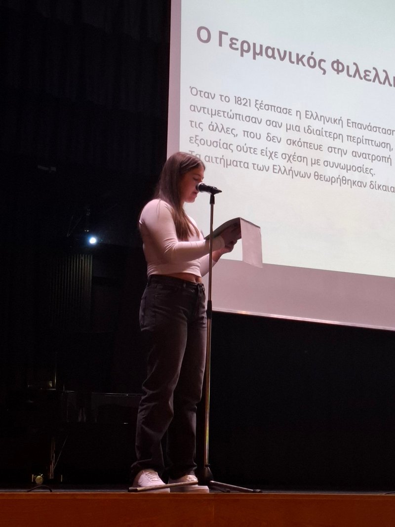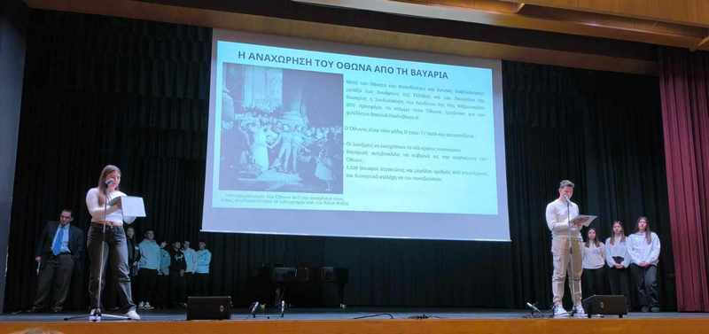 Οι μαθητές της Ευξεινούπολης Μ. Αναγνωστάκη, Γ.Βουλτσίδης, Ε.Γκινάι, Φ.Δεληζήση, Α.Μάγγα, Χ.Τζαφλέρη, Ι. Κακαρούχας, Ι.Μάμμου, Ι.Μητρολιού, Ν.Νικηφοράκης, Γ. Παπαευσταθίου, Ε.Πρεμέτη, Α.Πρεμέτη, Α.Στατήρας, Ν. Στατήρας, Α.Στεφανή, Χ.Χατζηβασιλειάδης, υπό τον συντονισμό της κας Μαρίας Γεωργούλα, καθηγήτριας Γερμανικής Φιλολογίας και του κ. Γεώργιου Τζαφλέρη, καθηγητή Φιλολογίας, προετοίμασαν και παρουσίασαν το θέμα: «Η Διακυβέρνηση του Όθωνα της Βαυαρίας˖ Προκλήσεις και Επιτεύγματα».