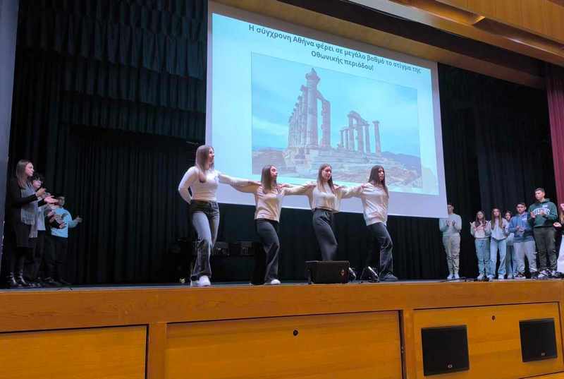 Με την οικονομική υποστήριξη του Όθωνα και την τεχνική υποστήριξη μιας ομάδας Βαυαρών ειδικών όπως του Στάντεμαν (Stademann), του Κλέντσε (Klenze), του Γκέρτνερ (Gartner) και του Σβάρτσμαν (Schwarzmann) θεμελιώθηκε η Αθήνα του σήμερα. Παρόλο που στην ιστορία έμεινε γνωστός ως έκπτωτος βασιλιάς, οι μαθητές μελέτησαν και ανέδειξαν και κάποια άλλη ιστορική πτυχή: τον ειρηνόφιλο ηγεμόνα Όθωνα και Μαικήνα (προστάτη) των Τεχνών. Η παρουσίαση των μαθητών ολοκληρώθηκε με στίχους του Νίκου Γκάτσου σε μουσική του Σταύρου Ξαρχάκου. Οι μαθήτριες χόρεψαν το ωραίο τραγούδι «Στου Όθωνα τα χρόνια», συγκινώντας και ξεσηκώνοντας τους παρευρισκόμενους μαθητές και καθηγητές, οι οποίοι τους καταχειροκρότησαν.