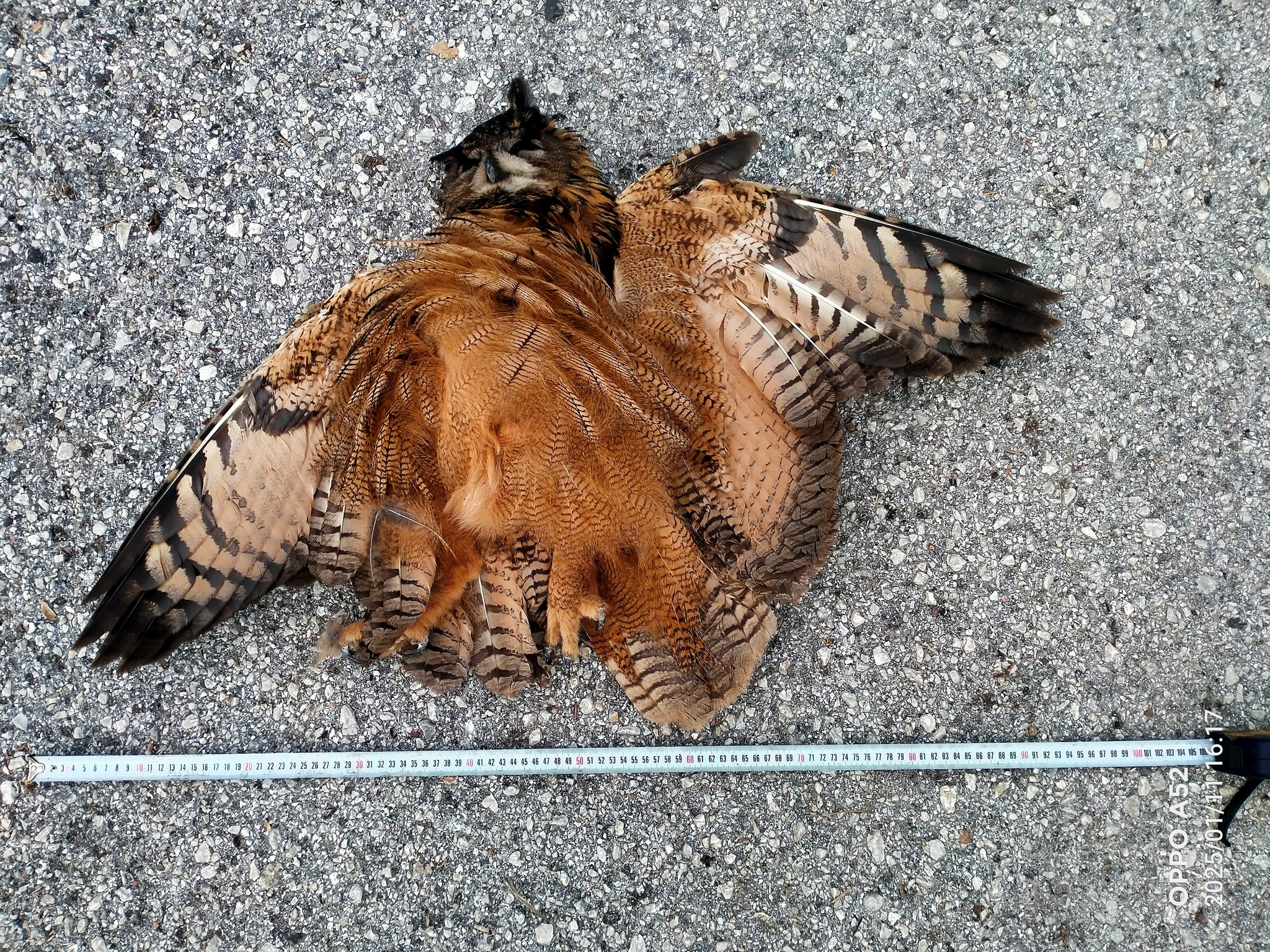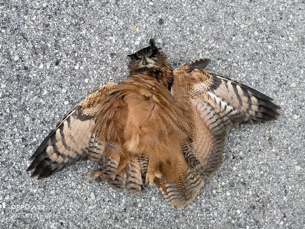 Όπως ανέφερε ο πρόεδρος της κοινότητας κος Βαλκανιώτης, “Πόσο κρίμα ένα τόσο όμορφο και χρήσιμο άγριο ζώο να το βρίσκεις νεκρό. Στην συμβολή των οδών Αλαμάνας και Αγίου Χαραλάμπους στο Αϊδίνιο, ένα μάλλον πολύ σπάνιο είδος κουκουβάγιας (μήκος 70cm και άνοιγμα φτερών 1 μέτρο). Όποιος έχει περισσότερες γνώσεις ας μας διαφωτίσει, καθώς δεν φαίνεται για ενδημικό είδος. Έχει διάτρηση στο ένα φτερό και στην αντίστοιχη πλευρά στον θώρακα (πιθανόν από σκάγια)”.