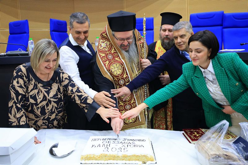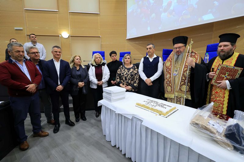 Η συνεδρίαση του Περιφερειακού Συμβουλίου ξεκίνησε σε εορταστικό κλίμα, καθώς πραγματοποιήθηκε η τελετή αγιασμού και η κοπή της βασιλόπιτας, χοροστατούντος του Σεβασμιωτάτου Μητροπολίτου Λαρίσης και Τυρνάβου, κ.κ. Ιερώνυμου. Τυχεροί αποδείχτηκαν η εντεταλμένη περιφερειακή σύμβουλος Σποράδων Αμαλία Γραβάνη και η επικεφαλής των «Ενωμένων Θεσσαλών» Ελευθερία Τζανακούλη, οι οποίες κέρδισαν από ένα γούρι, ενώ σε κλήρωση που ακολούθησε από μία διανυκτέρευση σε ξενοδοχεία της Θεσσαλίας κέρδισαν οι περιφερειακοί σύμβουλοι Ν. Ντίτορας, Γ. Αναστασίου, Γ. Τέας.