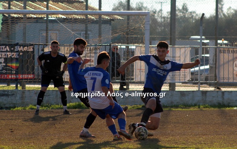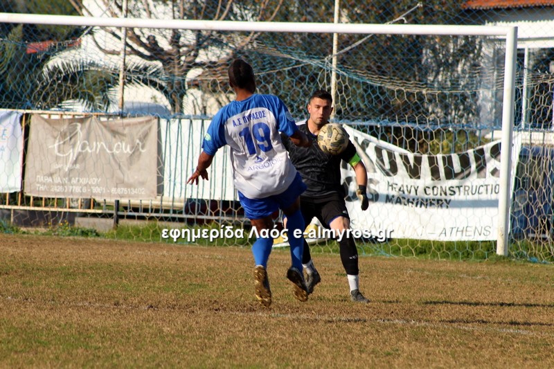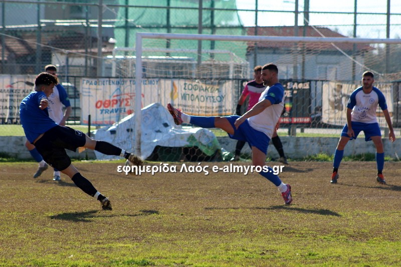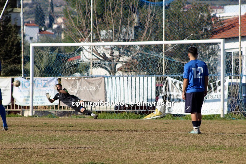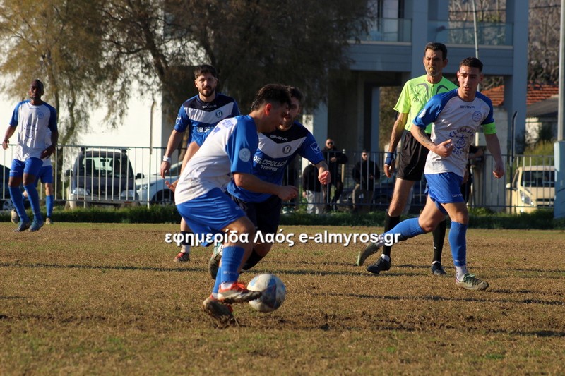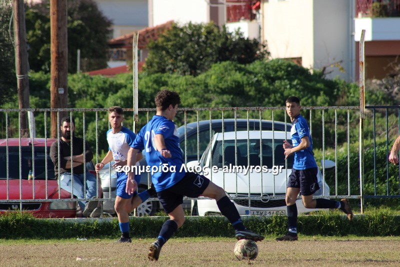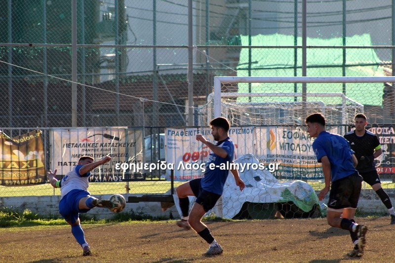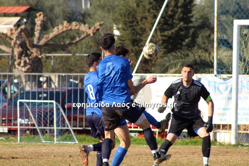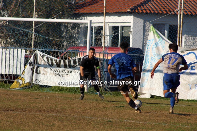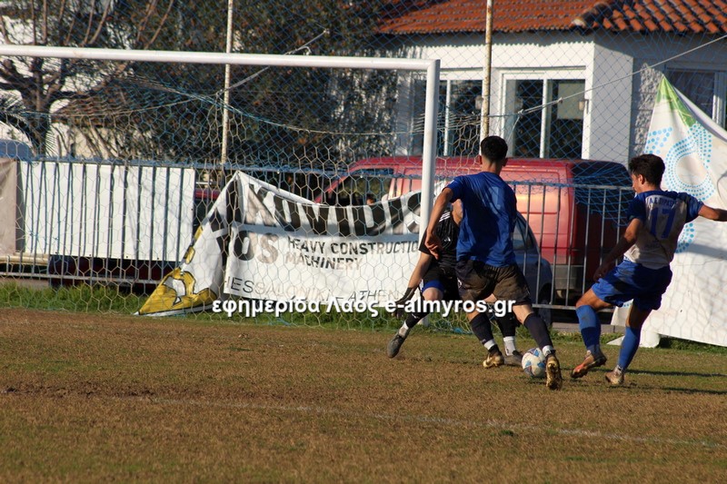 Σε τετ-α-τετ ο Τσιότρας σούταρε από κοντά, πλάγια θέση και ο Κοντογεωργάκης απέκρουσε με τα πόδια (41′). Αφού ο Πύρασος δεν έκανε το 2-1, έγινε το 1-2 από τον Αλμυρό στο επόμενο λεπτό. Σε φάση διαρκείας που οι αμυντικοί δεν μπόρεσαν να διώξουν την μπάλα, ο Δίντσης έκανε κεφαλιά-πάσα και ο Καραγεωργόπουλος, με το κεφάλι κι αυτός, σκόραρε. Το πρώτο γκολ του 15χρονου στο πρωτάθλημα!