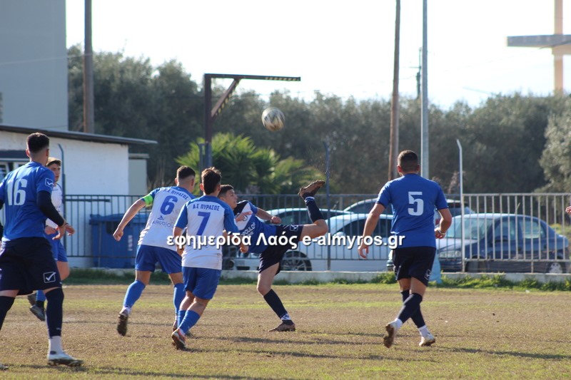 Από μία στημένη φάση το νικητήριο τέρμα στο 81′: φάουλ του Πάνου και κεφαλιά γκολ του Τσάνιου. Ο Πύρασος προσπάθησε να αντιδράσει, όμως ένα σουτ του Τσιότρα από καλό σημείο πέρασε άουτ στα τελευταία λεπτά.
