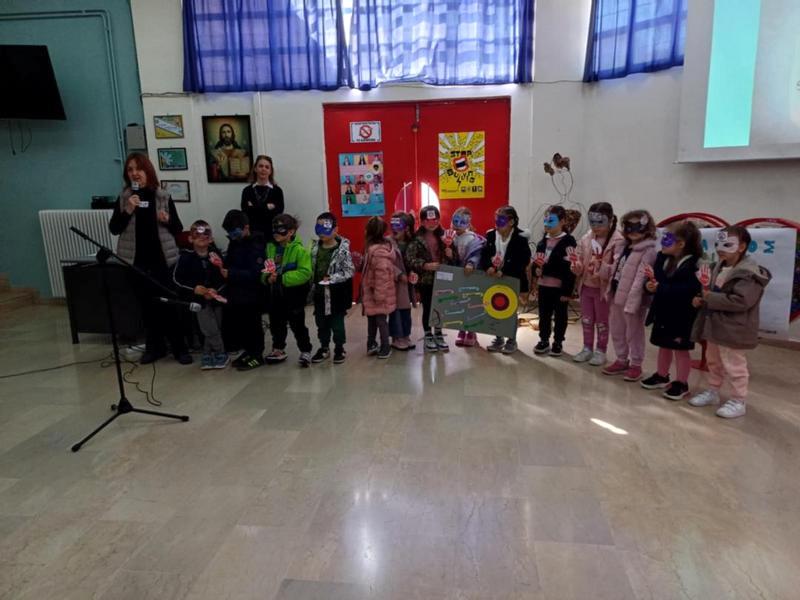 Παράλληλα με τους μαθητές μας, ένωσαν τις φωνές τους και οι λιλιπούτειοι μαθητές/τριες του 2ου Νηπιαγωγείου Ευξεινούπολης, οι οποίοι τραγούδησαν το δικό τους τραγούδι με την καθοδήγηση της δασκάλας τους κας Μπόθου Κατερίνας και ένωσαν τις φωνές τους μέσα από έναν συμβολικό κοινό μουσικό “θόρυβο”, εκτελώντας ένα κομμάτι κρουστών, ο ήχος του οποίου συμβολίζει τη δύναμη της συλλογικότητας, την αποφασιστικότητα να σπάσει η σιωπή και να ακουστεί το μήνυμα ότι κανένα παιδί δεν πρέπει να νιώθει μόνο του.