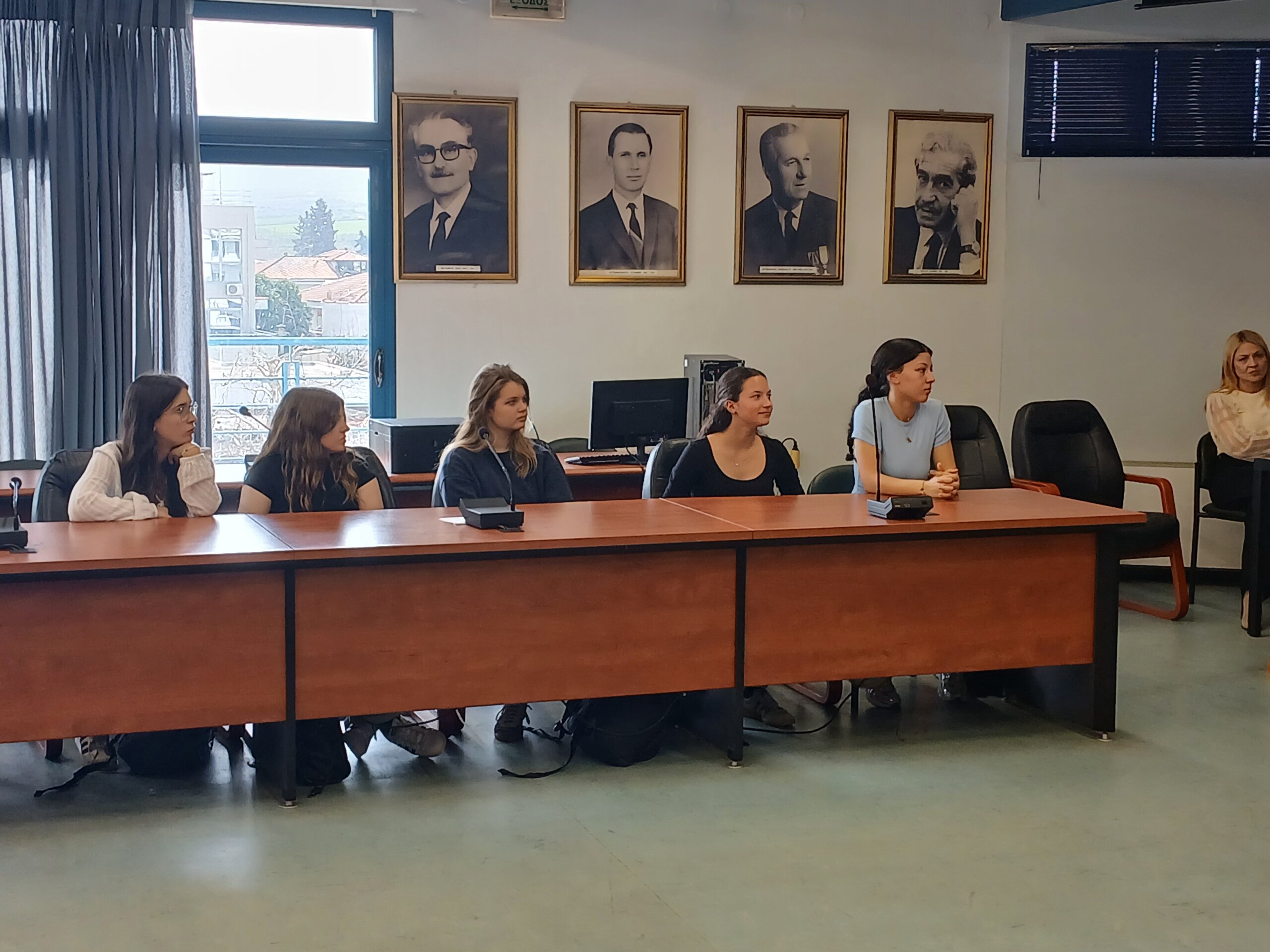 Οι Γάλλοι μαθητές επισκέφθηκαν και το Δημοτικό Σχολείο Ευξεινούπολης, έτσι στο Δημαρχείο τούς συνόδευσε η Διευθύντριά του κα Αφροδίτη Καραγεωργίου για τη διερμηνεία.