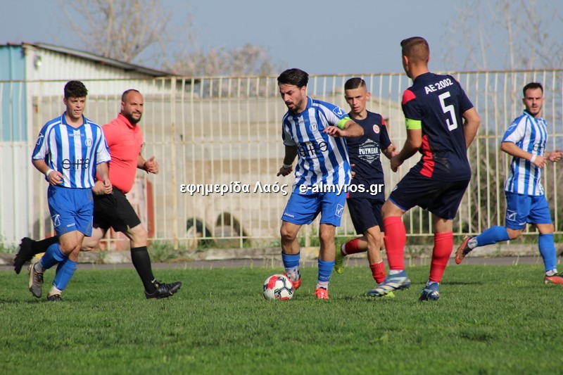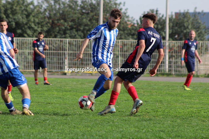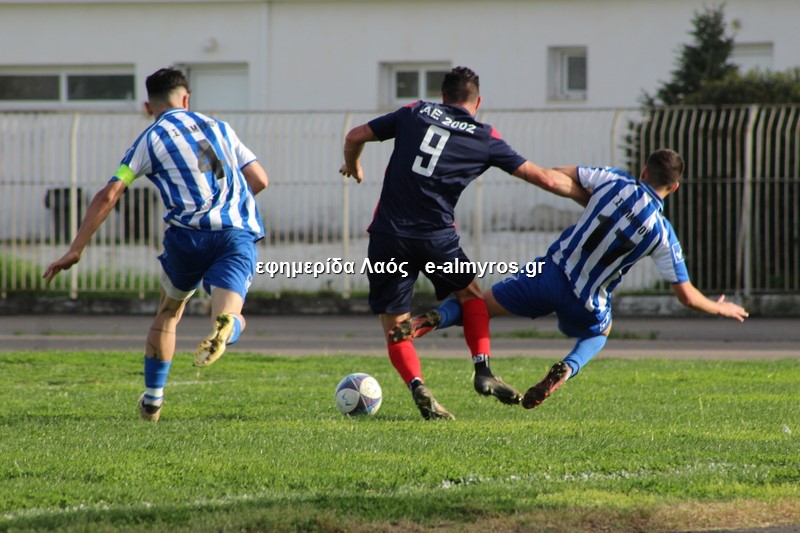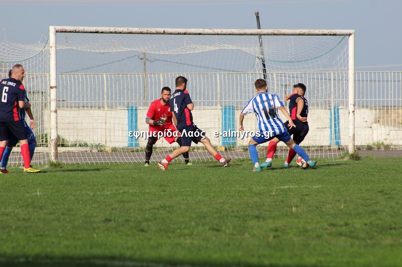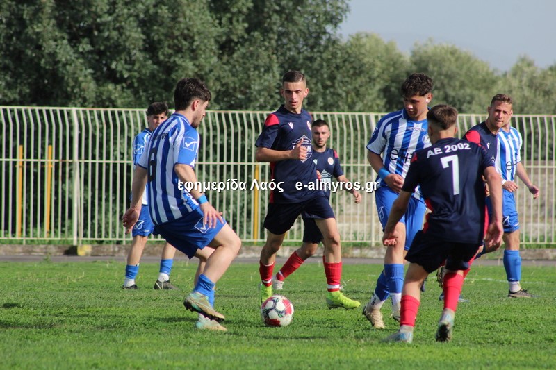 Από σέντρα του Τσάνιου, ο Κρανάς με κεφαλιά παραβίασε την εστία της ΑΕ 2002 για τρίτη φορά. Στο 28′ το γκολ αυτό για τους κυανόλευκους. Και ο αρχηγός του Αλμυρού έφθασε στο χατ τρικ στο 33′: ο Χριστοφορίδης τη σέντρα και ολομόναχος μέσα στη μικρή περιοχή, έκανε κοντρόλ και με προβολή από κοντά διαμόρφωσε το 4-1.