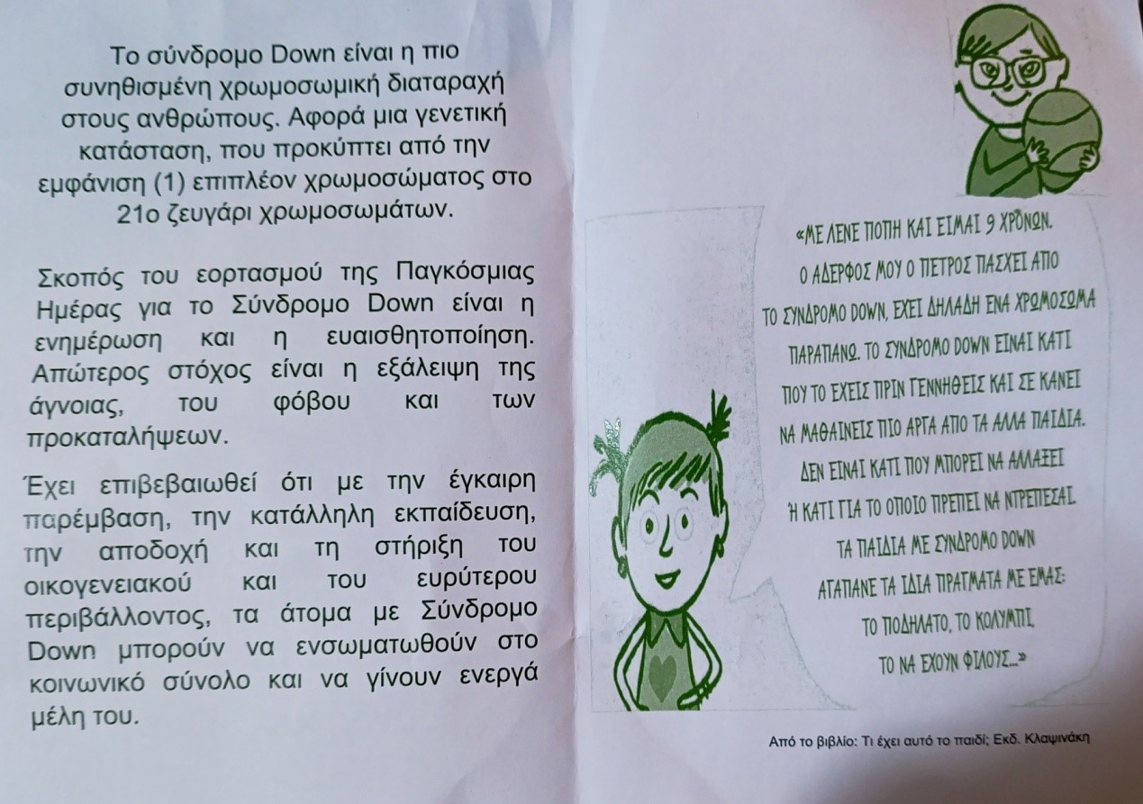 Το Ε.Ε.Ε.ΕΚ. ενημερώνει την τοπική κοινωνία για το σύνδρομο Down