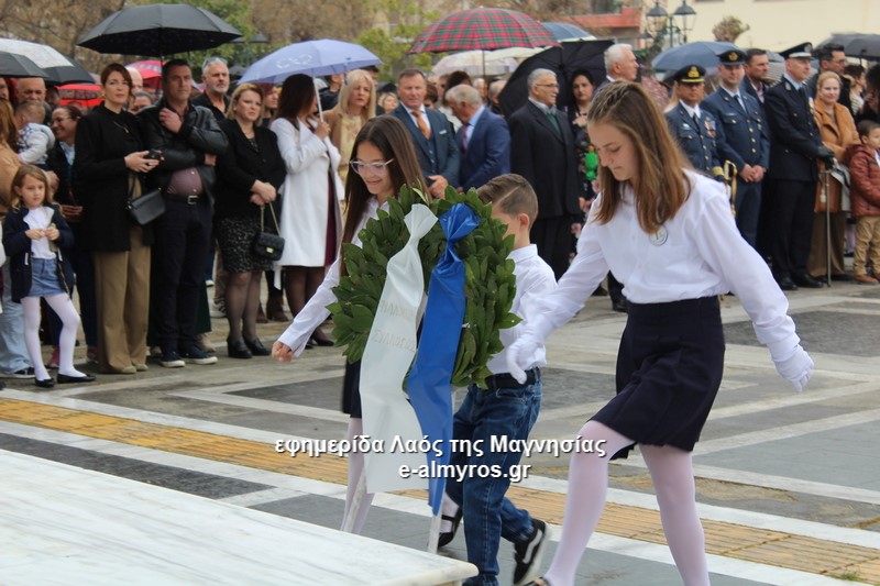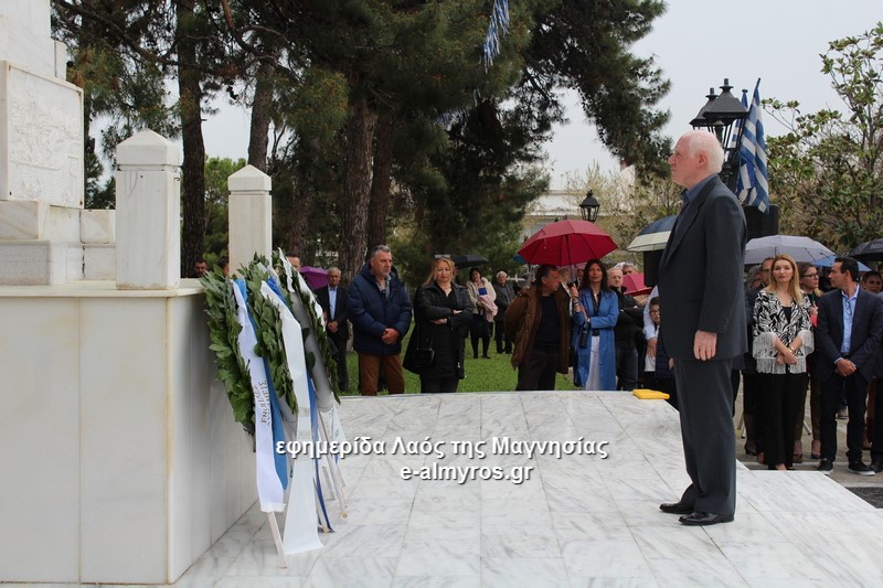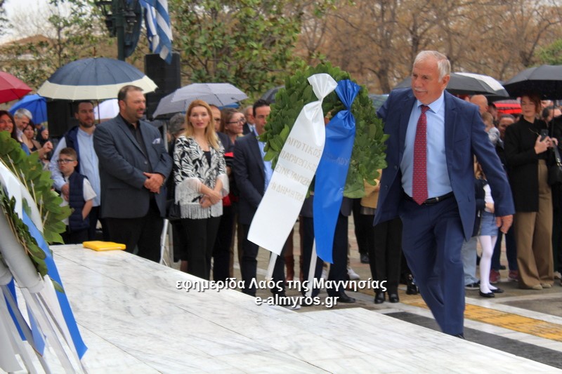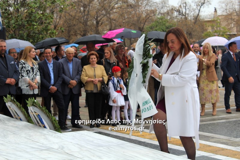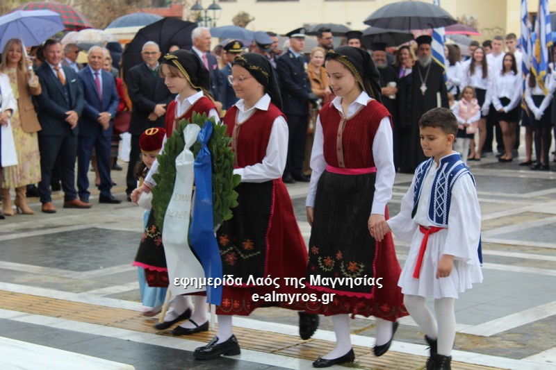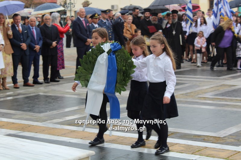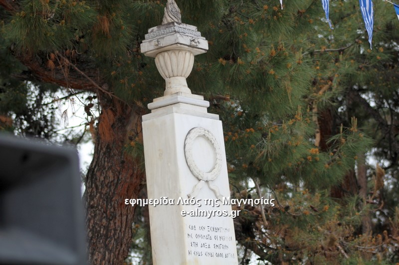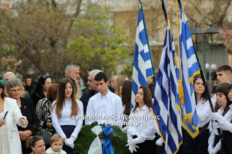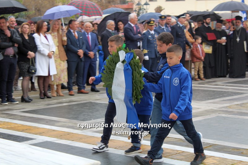Στεφάνι κατέθεσαν: εκ μέρους του Δήμου Βόλου η Αντιδήμαρχος κα Μποντού-Τοκαλή, εκ μέρους του τοπικού συμβουλίου Νέας Αγχίαλος η πρόεδρός του κα Πυργάνη-Παρασκευοπούλου, εκ μέρους του Α.Τ. Αλμυρού ο Αστυνόμος κος Σκορδάς, εκπρόσωπος της 111 Πτέρυγας Μάχης, εκ μέρους της ΔΗΜ.ΤΟ. Νέας Δημοκρατίας ο κος Τσακούμης, εκ μέρους του Συνεταιρισμού «Δήμητρα» ο κος Κίτσιος, αθλητές της ακαδημίας του Πυράσου και της Αγχιάλου Φθιώτιδες Θήβες, μαθητές από το Ευγένειο και Βαρνάλειο Δημοτικό Σχολείο, το Γυμνάσιο, το Λύκειο Ν. Αγχιάλου.