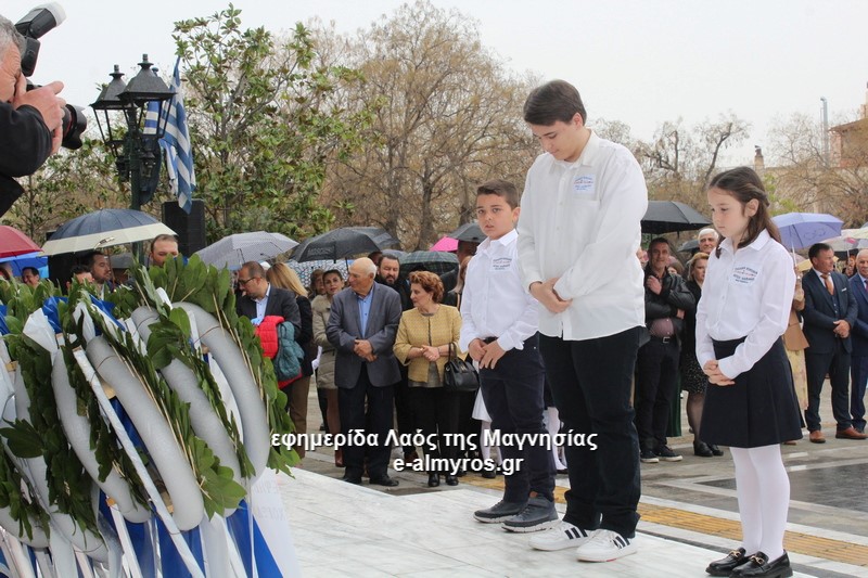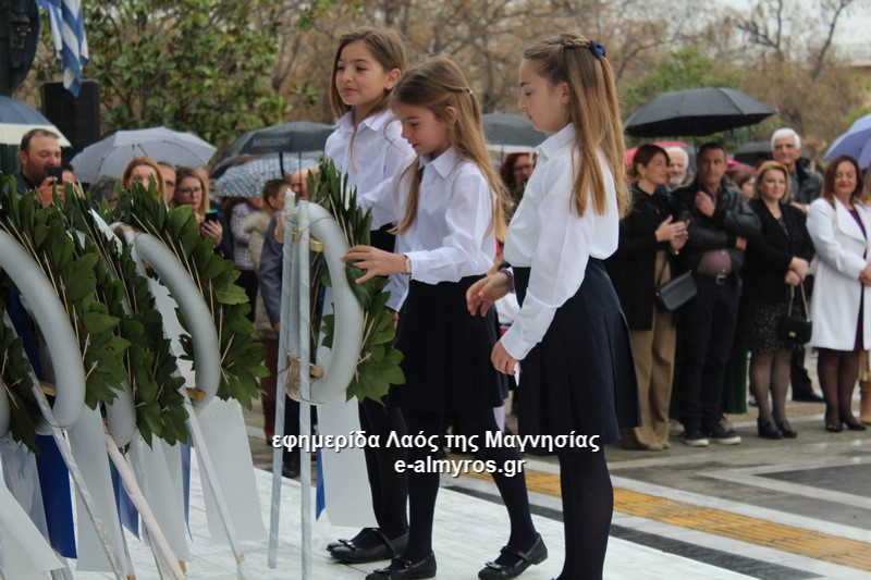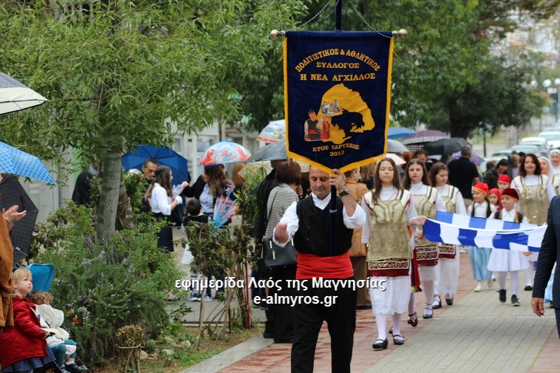 Με ψιλόβροχο έγινε ο εορτασμός της 25ης Μαρτίου στη Νέα Αγχίαλο καθώς επίσης και η μαθητική παρέλαση. Μετά τη Θεία Λειτουργία, ακολούθησε, όπως πάντα, Επιμνημόσυνη δέηση στο Ηρώο και κατάθεση στεφάνων.