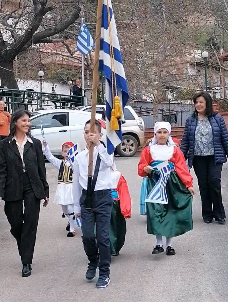 Μετά την παρέλαση, οι μαθητές συγκεντρώθηκαν στο Μνημείο των Ηρώων, όπου απήγγειλαν πατριωτικά ποιήματα και απέτιναν φόρο τιμής στους αγωνιστές του 1821. Η εκδήλωση ολοκληρώθηκε με τον Εθνικό Ύμνο, δημιουργώντας συγκινητικές στιγμές για όλους τους παρευρισκόμενους. Συγχαρητήρια στους μαθητές για την άψογη εμφάνιση και τη συμβολή τους στον εορτασμό της εθνικής επετείου!