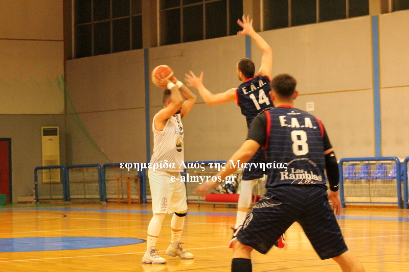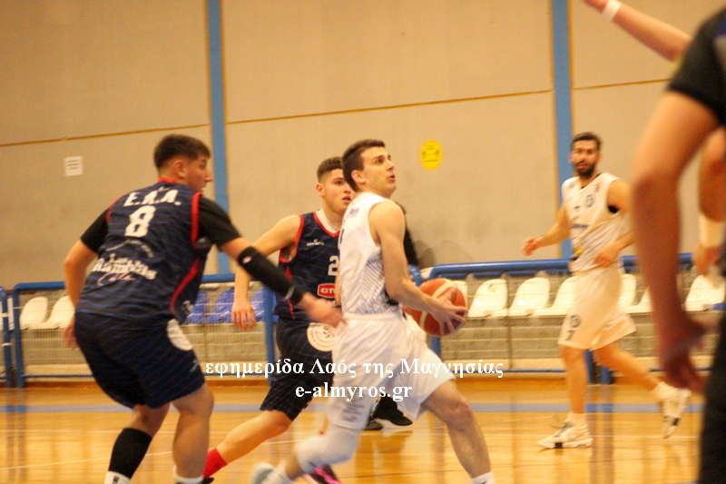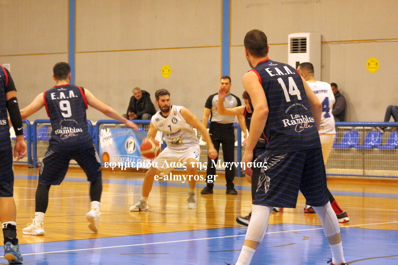 Μετά από μία βολή του Παπούλια, ο Ηλίας Βαλαμούτης έβαλε δύο σουτ, όμως και οι φιλοξενούμενοι έβρισκαν χαλαρή την άμυνα του Αλμυρού, επιμέρους σκορ 5-14 στο πρώτο τετράλεπτο. Η διαφορά έπεσε στους έντεκα αλλά τότε, πρώτα ο Βαλαμούτης, έπειτα ο Μαμούρας και πιο μετά ο Καραμανλής ευστόχησαν σε τρίποντα. Τρία διαδοχικά σουτ έξω από τα 6,75 από τρεις διαφορετικούς παίκτες και σκορ 62-42 στο 25:35. Οι Λαρισαίοι ήταν ανταγωνιστικοί, σε αυτό το δεκάλεπτο που το κέρδισαν με επιμέρους 19-23, σημείωσαν τέσσερα τρίποντα και έτσι δεν επέτρεψαν τη διαφορά να ξεφύγει. Η περίοδος έληξε 67-51.