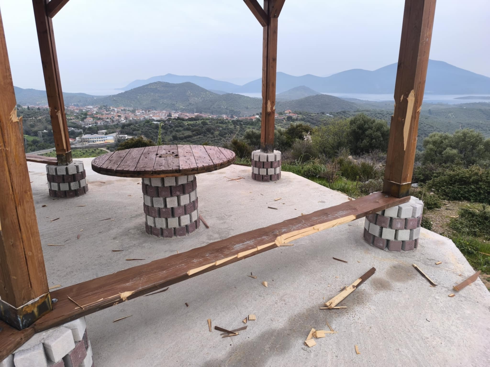 Άγνωστος κατέστρεψε το καλαίσθητο παρατηρητήριο στον Σταυρό Πτελεού