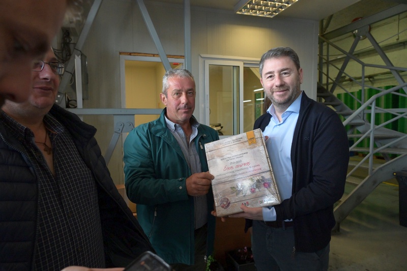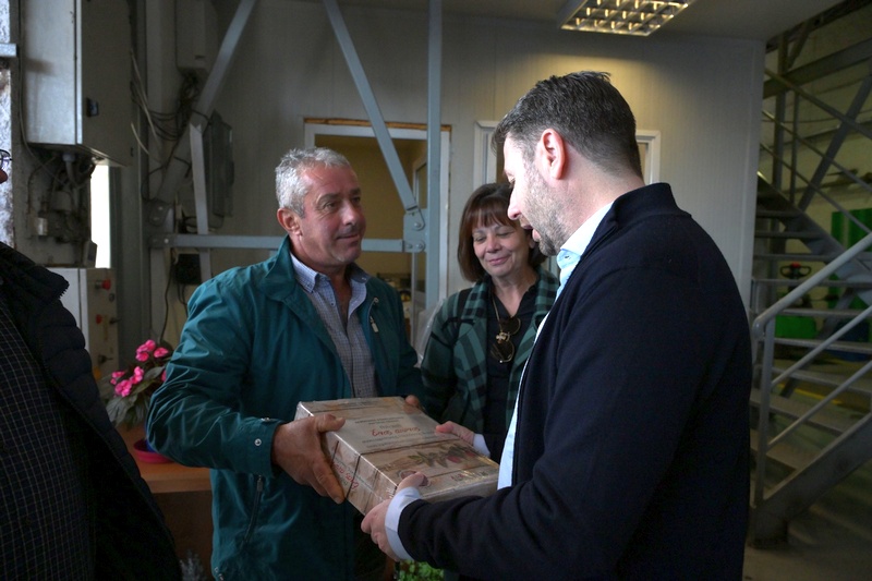 Τα μέλη της Διοίκησης του προσέφεραν μήλα ΖΑΓΟΡΙΝ και τη δίτομη έκδοση με την ιστορία ενός αιώνα του Αγροτικού Συνεταιρισμού όπως και το αντίστοιχο ντοκιμαντέρ, ευχαριστώντας τον θερμά για την τιμητική του επίσκεψη.