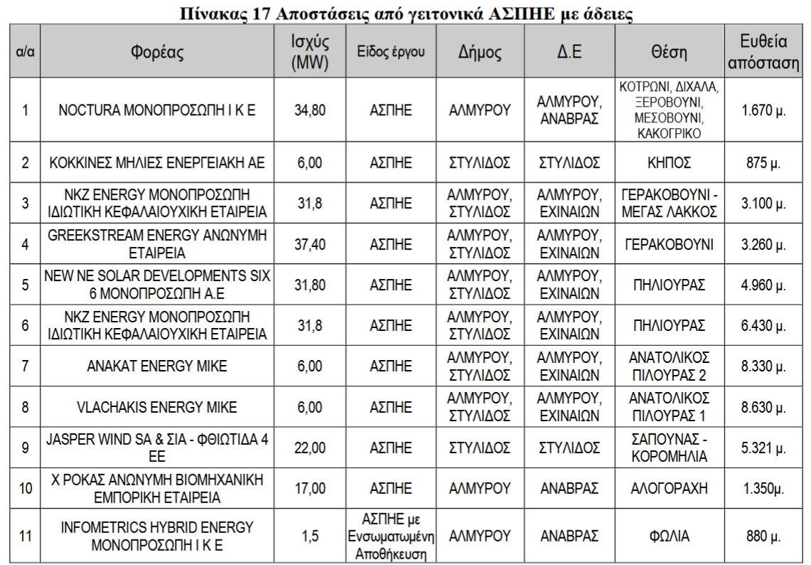 Στην τελευταία συνεδρίαση του Δημοτικού Συμβουλίου Αλμυρού ήρθε προς διατύπωση γνώμης θέμα επί της μελέτης περιβαλλοντικών επιπτώσεων του έργου «Αιολικός Σταθμός Παραγωγής Ηλεκτρικής Ενέργειας (ΑΣΠΗΕ) συνολικής ισχύος 144MW στις θέσεις «Κεδροράχη» (93.6MW) και «Μαυρολίθι» (50.4MW με ενσωματωμένη διάταξη αποθήκευσης (ΣΑΗΕ) εγκατεστημένης ισχύος 93.60MW και εγγυημένης χωρητικότητας 187.20MWh για το Α/Π «Κεδροράχη» και εγκατεστημένης ισχύος 50.40MW και εγγυημένης χωρητικότητας 100.80MW για το Α/Π «Μαυρολίθι» καθώς και των συνοδών έργων, του Δήμου Αλμυρού, Π.Ε. Μαγνησίας, Περιφέρεια Θεσσαλίας και των Δήμων Δομοκού και Στυλίδας, Π.Ε. Φθιώτιδας της Περιφέρειας Στερεάς Ελλάδας».