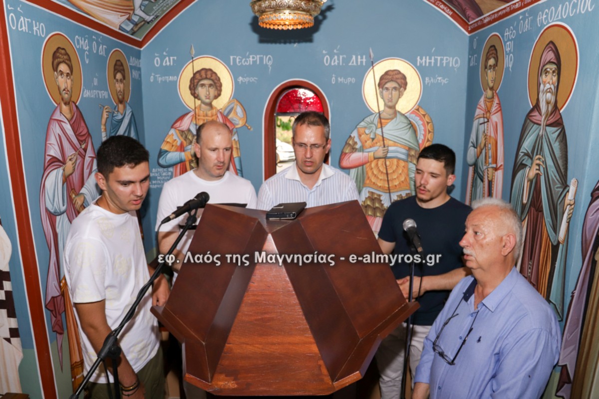 Στο εκκλησάκι Αγίας Τριάδας-Αγίου Εφραίμ τελέστηκε ο Πανηγυρικός Εσπερινός το βράδυ της Κυριακής 8 Ιουνίου, μοιράσθηκε το κουρμπάνι στους προσκυνητές, φαγητό δηλαδή που περιλαμβάνει πλιγούρι, βραστό σιτάρι και πρόβειο μαγειρεμένο κρέας. Σημειώνεται πως το κρέας ήταν προσφορά του Μηνά Παπαγιάννη και του Σπύρου Βαλαμούτη, ενώ μαγειρεύτηκε στη λέσχη της 111 Πτέρυγας Μάχης, με τους διοργανωτές να απευθύνουν τις θερμές τους ευχαριστίες τόσο προς τους αυτοδιοικητικούς του Δήμου Αλμυρού όσο και προς τον Διοικητή της 111 για τη σημαντική τους συνεισφορά.