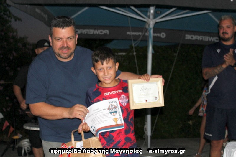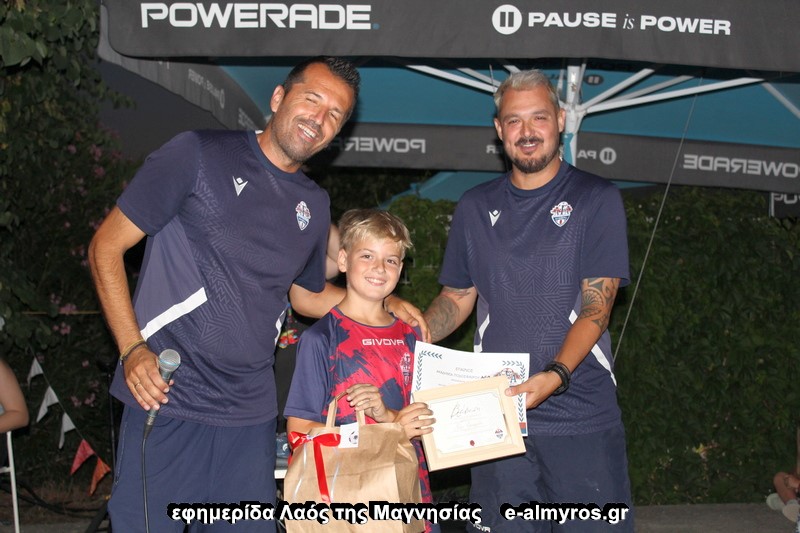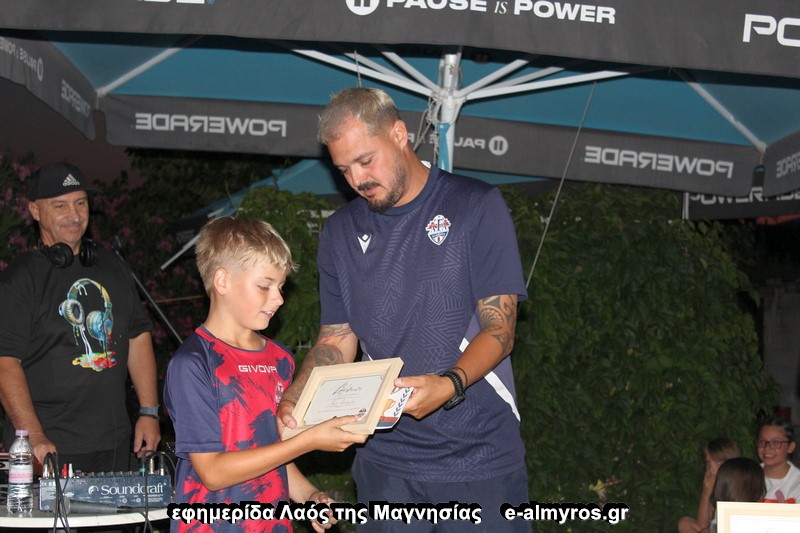 Από την Almyros Football Arena βραβεύτηκαν με αναμνηστικά δώρα και τιμητική πλακέτα οι ποδοσφαιριστές: Κώστας Τιμπλαλέξης και Δημήτρης Μπέκος οι οποίοι συγκέντρωσαν την καλύτερη βαθμολογία στο σχολείο, ο Χάρης Δανιηλίδης διότι ήταν ο πιο συνεπής στις προπονήσεις και ο Παναγιώτης Χορταριάς γιατί είχε τη μεγαλύτερη βελτίωση στο ποδόσφαιρο μέσα στη χρονιά σύμφωνα με τους προπονητές της ακαδημίας. Αναμνηστικά διπλώματα δόθηκαν σε όλα τα παιδιά.