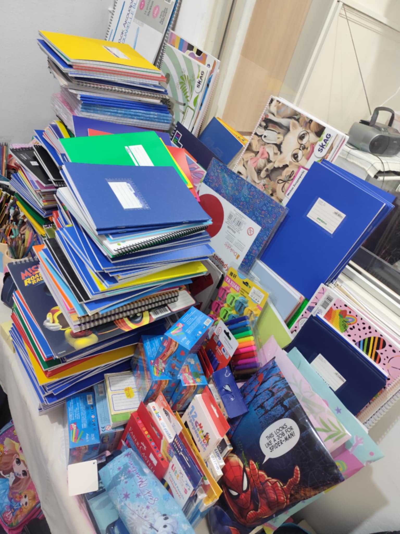 Όπως μπορείτε να δείτε στις φωτογραφίες, η ανταπόκριση του κόσμου στο κάλεσμα της Στέγης ήταν τεράστια, θα την χαρακτηρίζαμε συγκινητική. Όλα αυτά τα είδη που μαζεύτηκαν, θα ταξινομηθούν για Νηπιαγωγεία και Δημοτικά σχολεία και κατόπιν θα παραδοθούν στους Διευθυντές και τις Διευθύντριες των σχολικών μονάδων, όχι μόνο στον Αλμυρό αλλά σε όλα τα χωριά που λειτουργούν σχολεία. Κάποιοι μάλιστα διέθεσαν χρήματα -κι ενώ η Στέγη δεν δέχεται ποσά- τα οποία θα διατεθούν ώστε να αγοραστούν σχολικά είδη για οικογένειες τις οποίες η δομή ποικιλοτρόπως έχει αναλάβει την στήριξή τους.