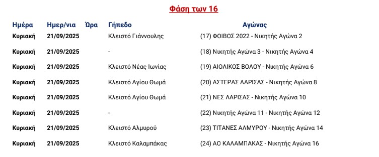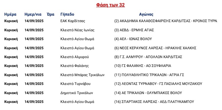 Οι Τιτάνες αρχίζουν από τη β’ φάση όταν θα υποδεχθούν τον νικητή του ζευγαριού ΑΕ Τρικάλων-Ολυμπιακός Βόλου.