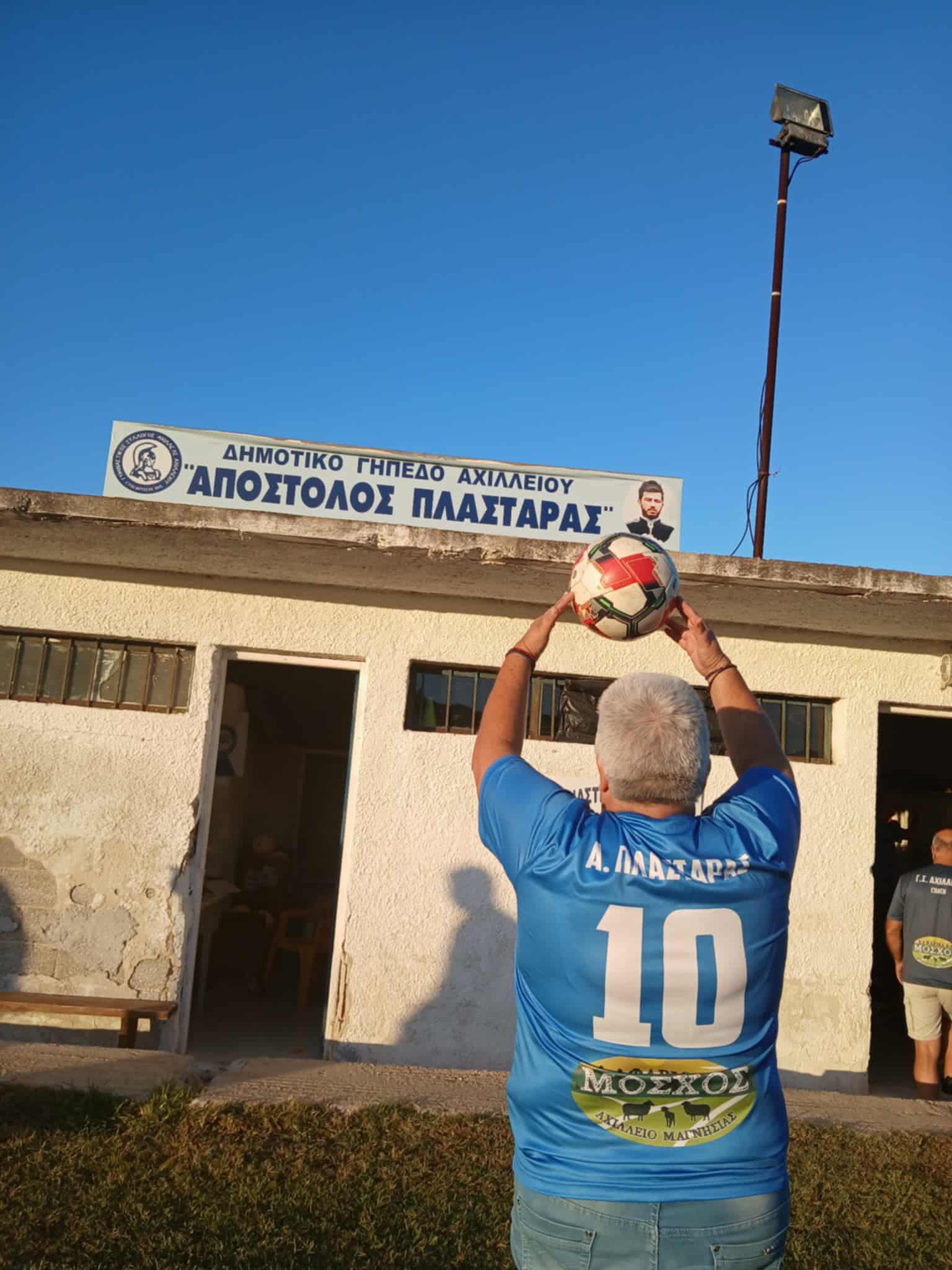 Το καθιερωμένο πλέον φιλικό του Αχιλλέα με τους παλαίμαχους του ΓΣΑ, που γίνεται κάθε χρόνο τέτοια εποχή στο δημοτικό γήπεδο «Απόστολος Πλασταράς» του Αχιλλείου, αποτελεί μία ημέρα μνήμης και τιμής για τον σπουδαίο ποδοσφαιριστή που ανέδειξε το χωριό και έφυγε τόσο πρόωρα από τη ζωή -σε λίγες ημέρες συμπληρώνονται δέκα χρόνια από τον αδόκητο θάνατό του-.