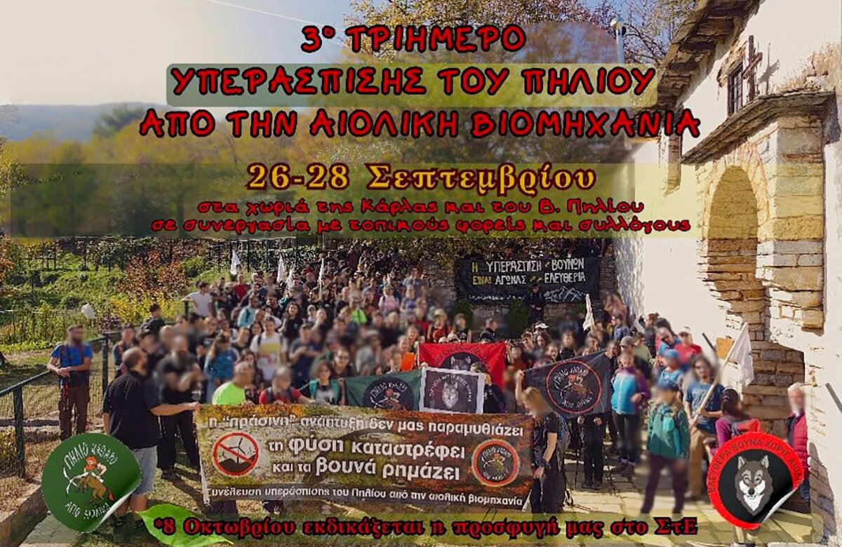 Ανακοινώθηκε από την ομάδα «Συνέλευση Υπεράσπισης του Πηλίου από την αιολική βιομηχανία» το πρόγραμμα για το «3ο Τριήμερο Υπεράσπισης του Πηλίου» που έχει ορισθεί να πραγματοποιηθεί από 26 έως