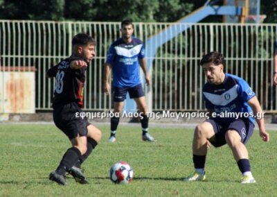 Με τη συμπλήρωση μισής ώρας παιχνιδιού ο Τσιακίρης άνοιξε το σκορ, ισοφάρισε με κεφαλιά λίγο πριν βγει το ημίχρονο ο Καραγιάννης και το 1-2 γράφτηκε από την άσπρη βούλα του πέναλτι ενώ απέμεναν άλλα δεκαπέντε λεπτά για τη λήξη. Πριν καλά-καλά προλάβουν να αντιδράσουν οι γηπεδούχοι, ο Κρανάς σημείωσε το τρίτο τέρμα του Αλμυρού και στην ουσία «κλείδωσε» τη νίκη για τους «κυανόλευκους».