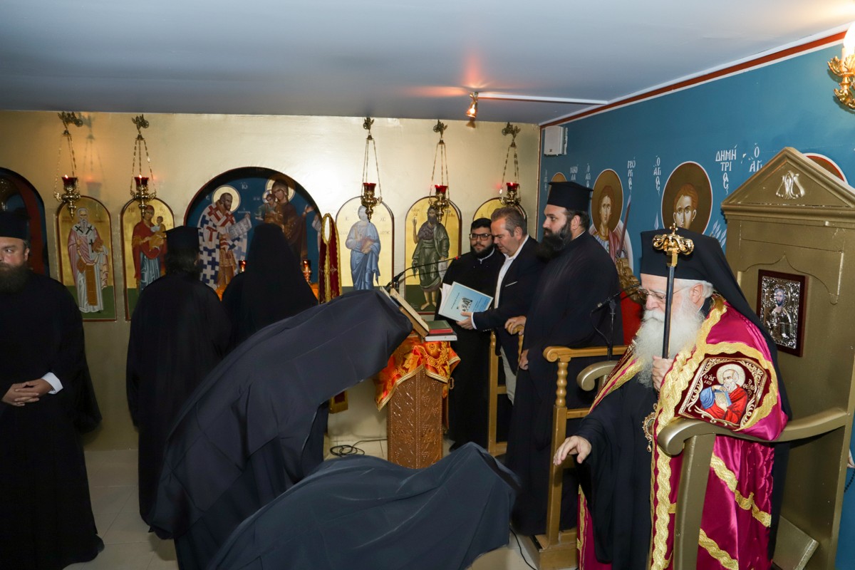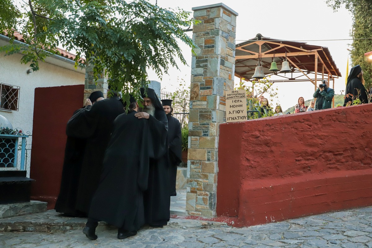 Στην ομιλία του ο Σεβασμιώτατος αναφέρθηκε στην σύμπτωση της Κουράς του π. Πορφυρίου, με την έναρξη του 28ου έτους της Επισκοπικής του διακονίας στην Δημητριάδα. Έκανε εκτενή αναφορά στην ίδρυση της Μονής, προ εικοσιπενταετίας, από τους Πατέρες Μάξιμο Παπαϊωάννου και Ιγνάτιο Αναγνωστόπουλο, σε εγκαταλελειμμένο χώρο, όπου επί μακρόν λειτουργούσε η Σχολή Κωφαλάλων και τον μετέτρεψαν σε τόπο μοναστικής ασκήσεως και ελκύσεως πολλών προσκυνητών, όπου, πλέον, μαζί με τον νέο αδελφό, εγκαταβιούν τέσσερις Πατέρες, που ταυτόχρονα διακονούν ιεραποστολικώς την Μητρόπολη και τον Επίσκοπο. Ο κ. Ιγνάτιος εξήρε το ήθος του π. Πορφυρίου, την χάρισμα της χαράς και της πειθαρχίας, που διαθέτει, ενώ επαίνεσε την προθυμία που επιδεικνύει να φοιτά στην Σχολή Μαθητείας της Εκκλησίας της Ελλάδος, που αφορά υποψηφίους Κληρικούς, εκεί όπου ξεδίπλωσε τα χαρίσματά του και κέρδισε την αγάπη των καθηγητών και των συσπουδαστών του.