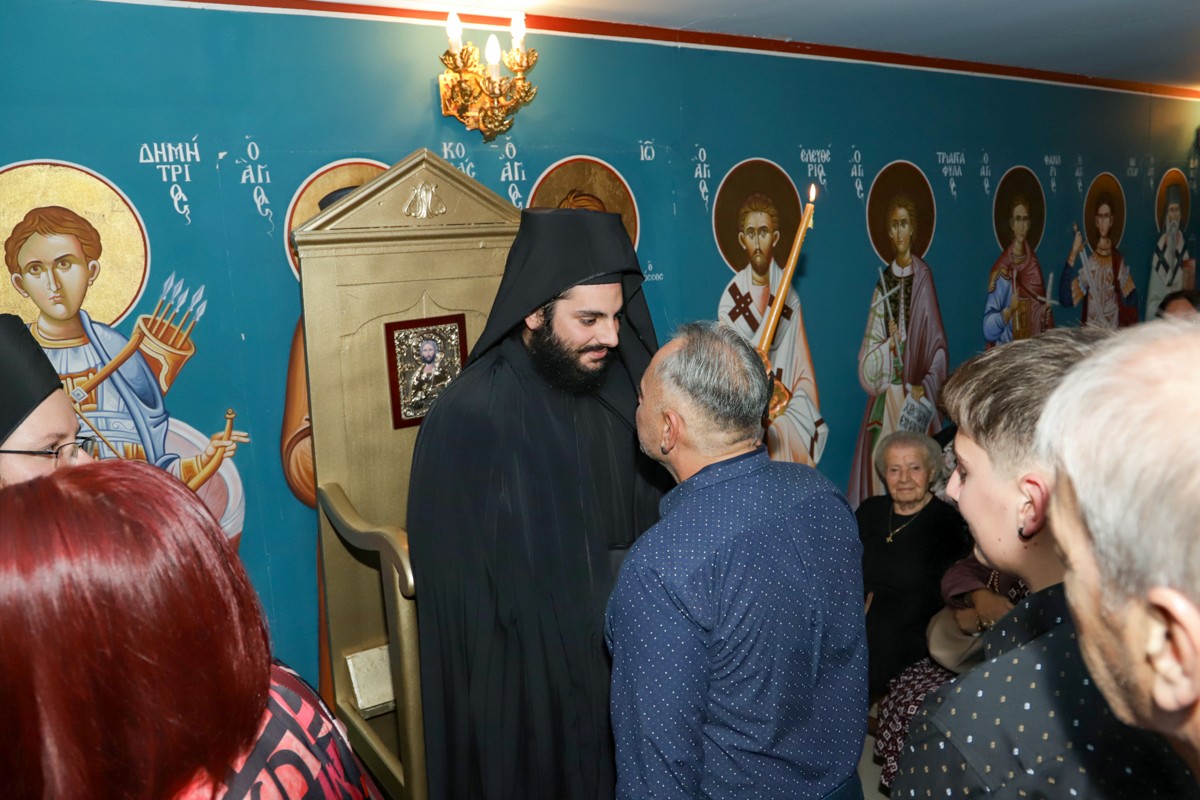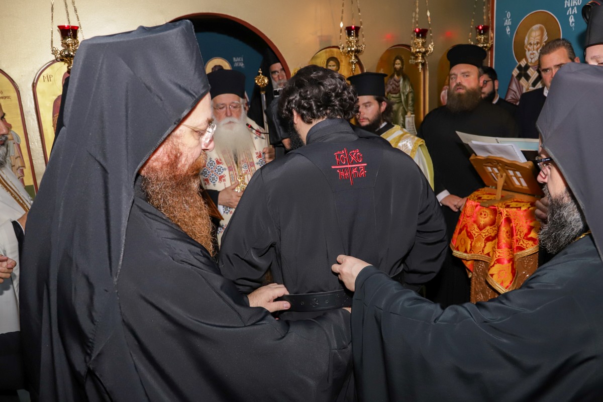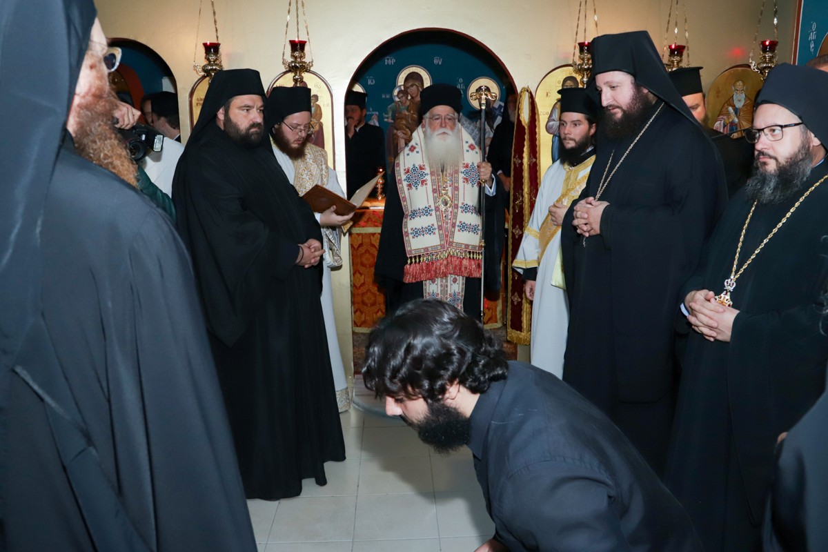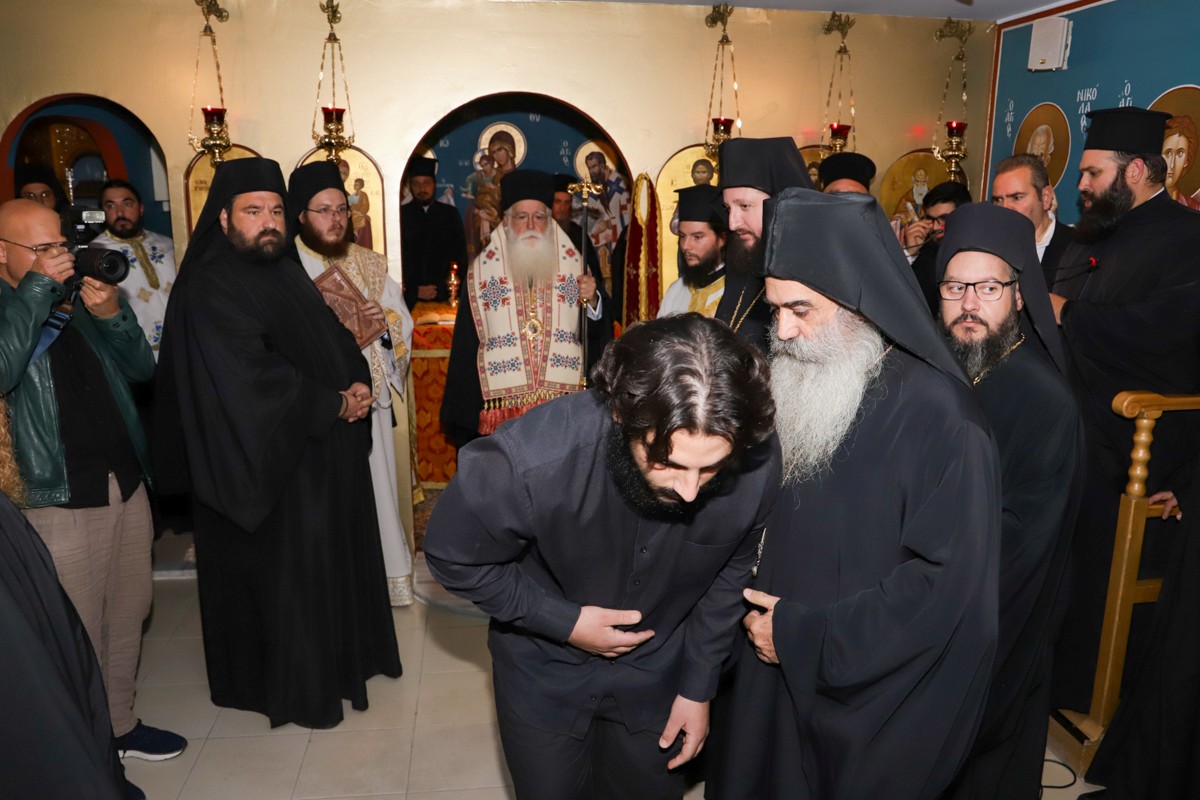 Ο Σεβασμιώτατος αναφέρθηκε στο όνομα του νέου Μοναχού, που παραπέμπει στον Νεοφανή Όσιο Πορφύριο Καυσοκαλυβίτη και τον κάλεσε να υιοθετήσει τις αρετές του Αγίου, όπως η ταπείνωση και διάκριση. «Η ταπείνωση», τόνισε, «είναι αρετή αρετών, που οδηγεί στην αληθινή αγάπη, που ξέρει να συγχωρεί, δέχεται τους άλλους όπως είναι, προσφέρεται χωρίς να αναμένει ανταλλάγματα. Η διάκριση είναι εξαιρετικά σημαντική στη ζωή μας, γιατί μας κάνει να πορευόμαστε στον δρόμο της διακονίας με σταθερότητα, παρά τις δύσκολες στιγμές. Ο Χριστός θα είναι η δύναμή σου. Εκείνος θα σε συντροφεύει …».