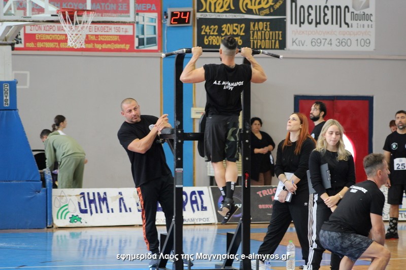 Όπως θα δείτε στις φωτογραφίες μας, η αγωνιστική κατηγορία FITNESS CHALLENGE αποτελείται από έναν κύκλο ασκήσεων δύναμης σε 6 σταθμούς όπου οι αθλητές προσπαθούν να εκτελέσουν τον μέγιστο αριθμό επαναλήψεων σε 2 λεπτά: έλξεις στο μονόζυγο, άρσεις με δράμια squat and pool, βυθίσεις στήθους, προβολές με μπάρα στην πλάτη, κοιλιακοί στο μονόζυγο και devil press ασκήσεις με αλτήρες στα χέρια. Νομίζουμε ότι οι εικόνες είναι ενδεικτικές.
