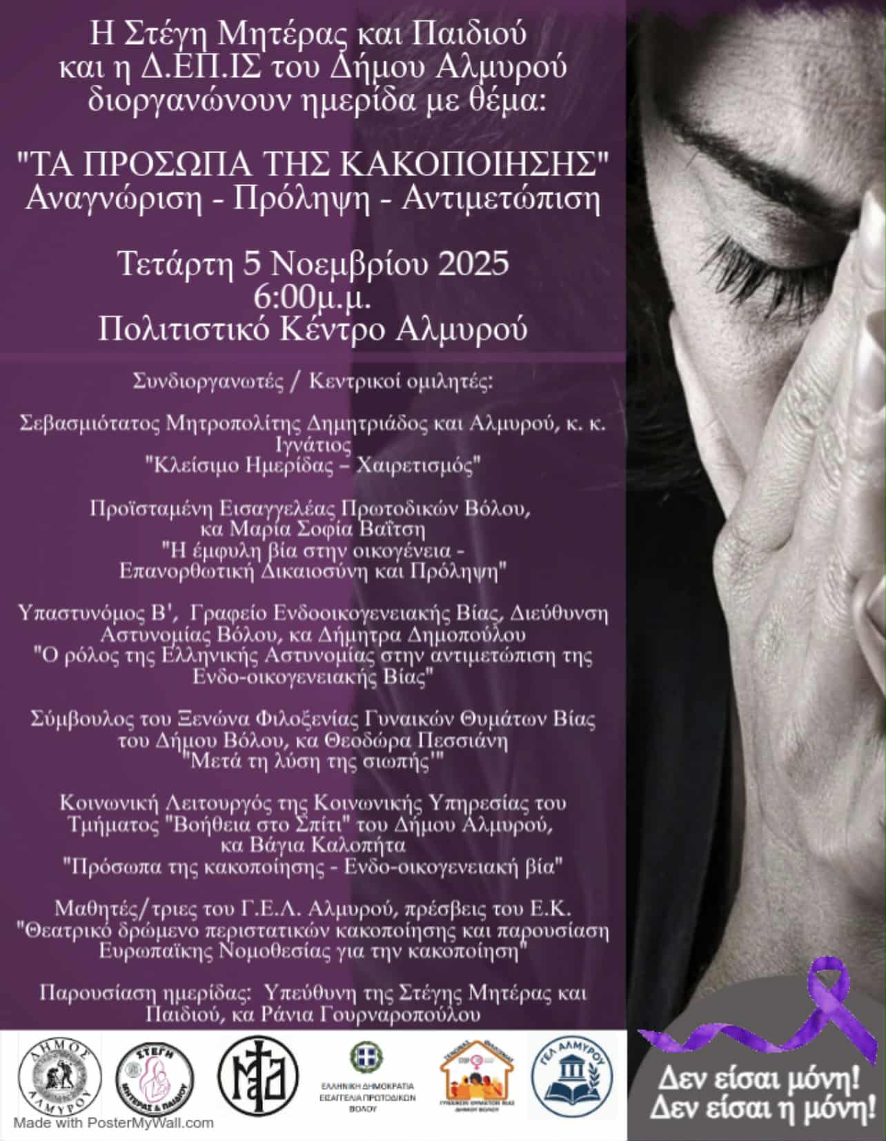 “Τα πρόσωπα της κακοποίησης”: Ημερίδα στον Αλμυρό για την έμφυλη βία