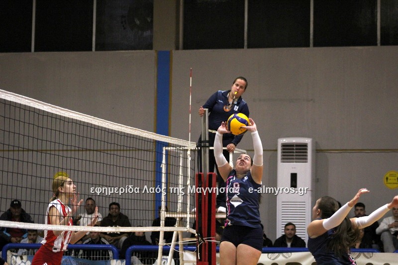 Στο 2ο σετ, επιθετική πολυφωνία για την κυανόλευκη ομάδα: 1-0 από την Πολίτα σε πρώτο χρόνο, 2-1 από την Ξένια με καρφί πίσω από τη ζώνη των τριών μέτρων, 3-2 με καρφί της Καραγιάννη, 5-3 με δύο σερί της Παπαδοπούλου και 7-4 με δύο σερί άσους από την Ξένια. Η διαφορά αυξήθηκε καθώς οι γηπεδούχες είχαν καλό ρυθμό, 9-5 με μπλοκ της Πολίτας και 10-5 με ένα έξυπνο πέρασμα της Ελένης Ξάνθη η οποία αντί για πάσα με τα δάχτυλα, έστειλε την μπάλα απευθείας στο τερέν του Ολυμπιακού. Η Μπουκουβάλα έγινε στη συνέχεια αυτή που τελείωνε τις φάσεις, με δικό της άσο από σερβίς διαμορφώθηκε το 16-8, η Πολίτα με το ένα χέρι το 19-9 και στο φινάλε, η Καραγιάννη πίεσε πολύ από το σερβίς και είχε δύο άσους κι ένα σερβίς στο οποίο δεν βγήκε υποδοχή. Με άσο της Γουργιώτη έγινε το 25-11.