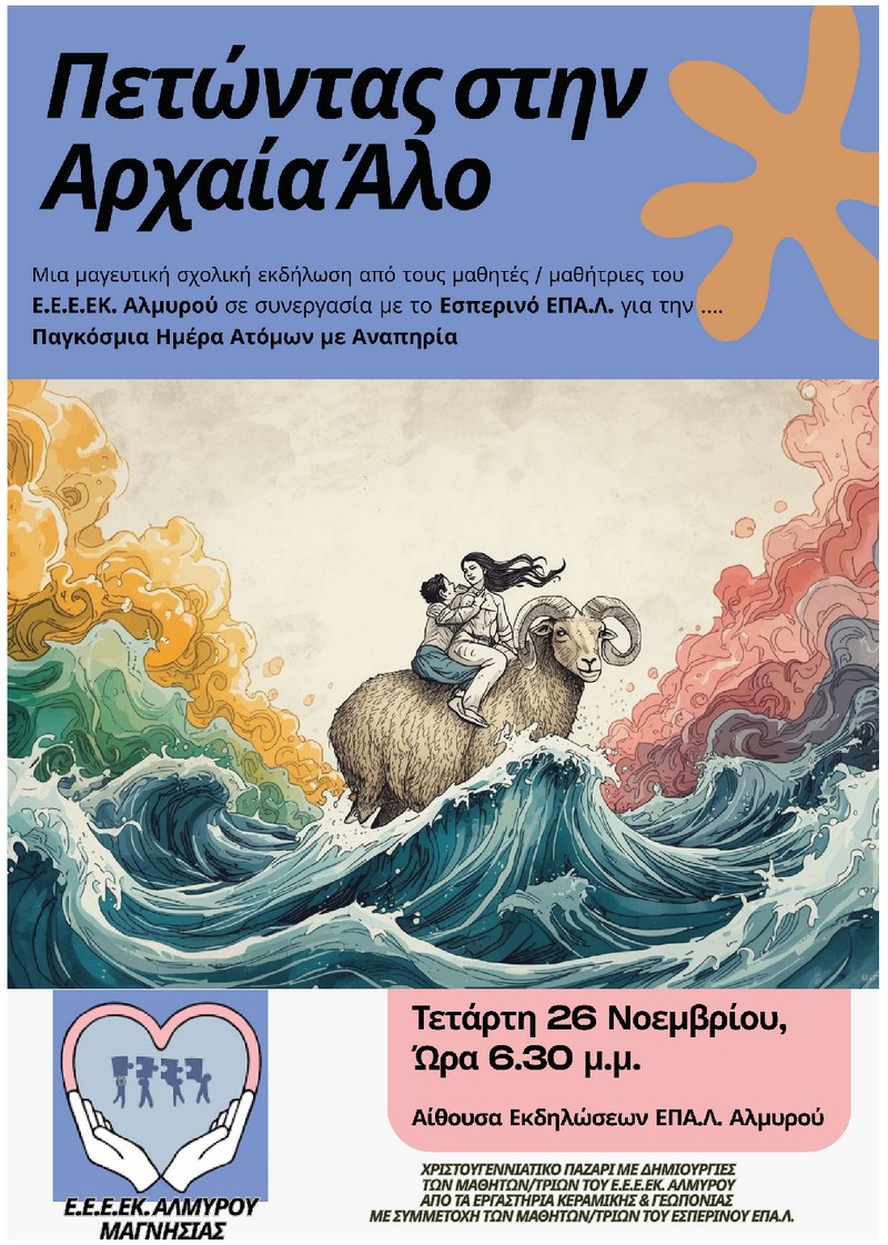 -Θεατρική παράσταση από τους/τις μαθητές/τριες του Ε.Ε.Ε.Ε.Κ. Αλμυρού και μαθητές του Εσπερινού ΕΠΑΛ Αλμυρού «Πετώντας στην Αρχαία Άλο»