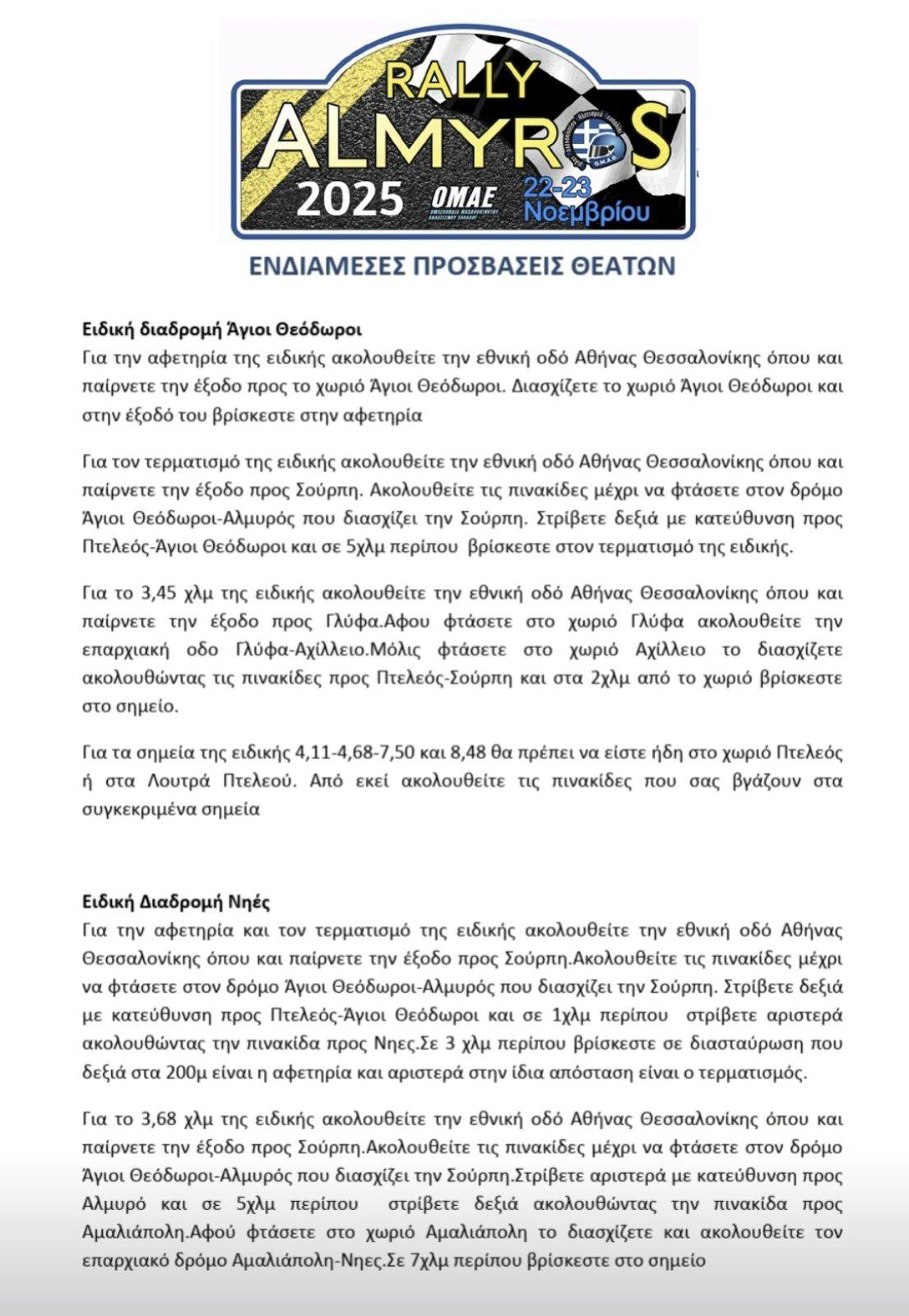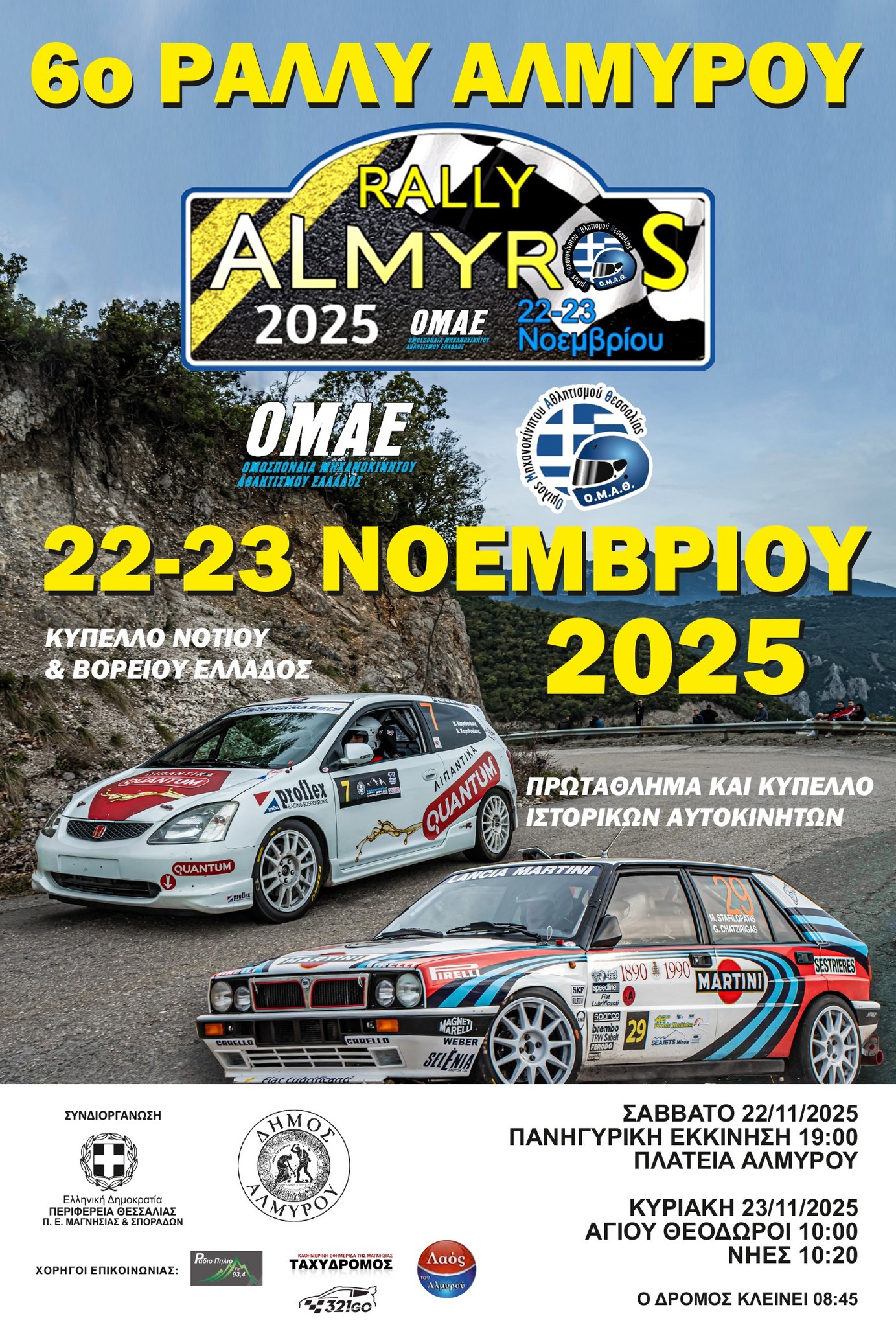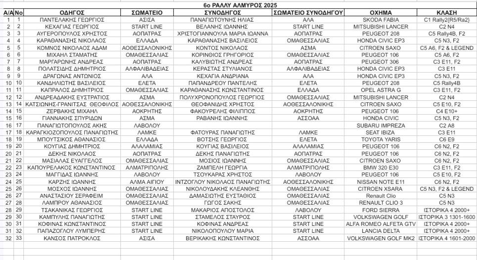 32 πληρώματα συγκέντρωσε το “6ο Ράλλυ Αλμυρός” που είναι προγραμματισμένο να διεξαχθεί το διήμερο 22-23 Νοεμβρίου 2025 πέφτει η αυλαία των ασφάλτινων αγώνων ράλλυ της χώρας. Συνδυασμοί από όλη την επικράτεια δηλώνουν βροντερό “παρών” στον αγώνα και υπόσχονται άφθονη δράση και θέαμα στον τελευταίο ασφάλτινο αγώνα ράλλυ της χρονιάς.