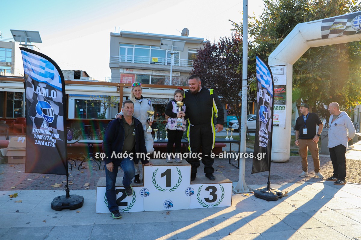 Η αυλαία του 6ου Ράλλυ Αλμυρός έπεσε στην κεντρική πλατεία της πόλης το απόγευμα της Κυριακής όπου πραγματοποιήθηκε η τελετή βραβεύσεων.