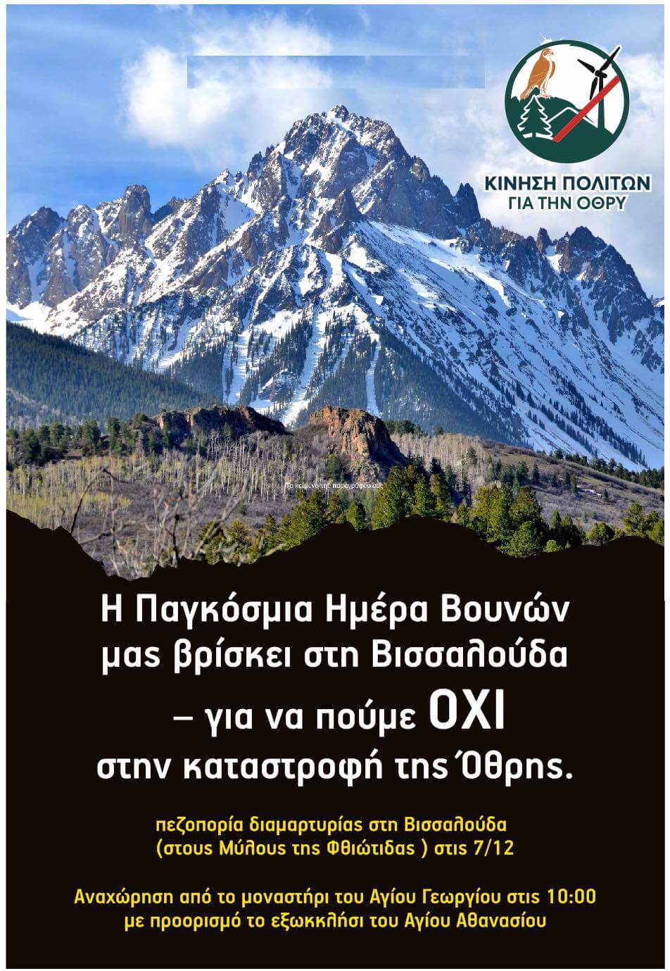 Πεζοπορία διαμαρτυρίας στη Βισσαλούδα με σύνθημα “ΟΧΙ στην καταστροφή της Όθρυος” διοργανώνεται την Κυριακή 7 Δεκεμβρίου.