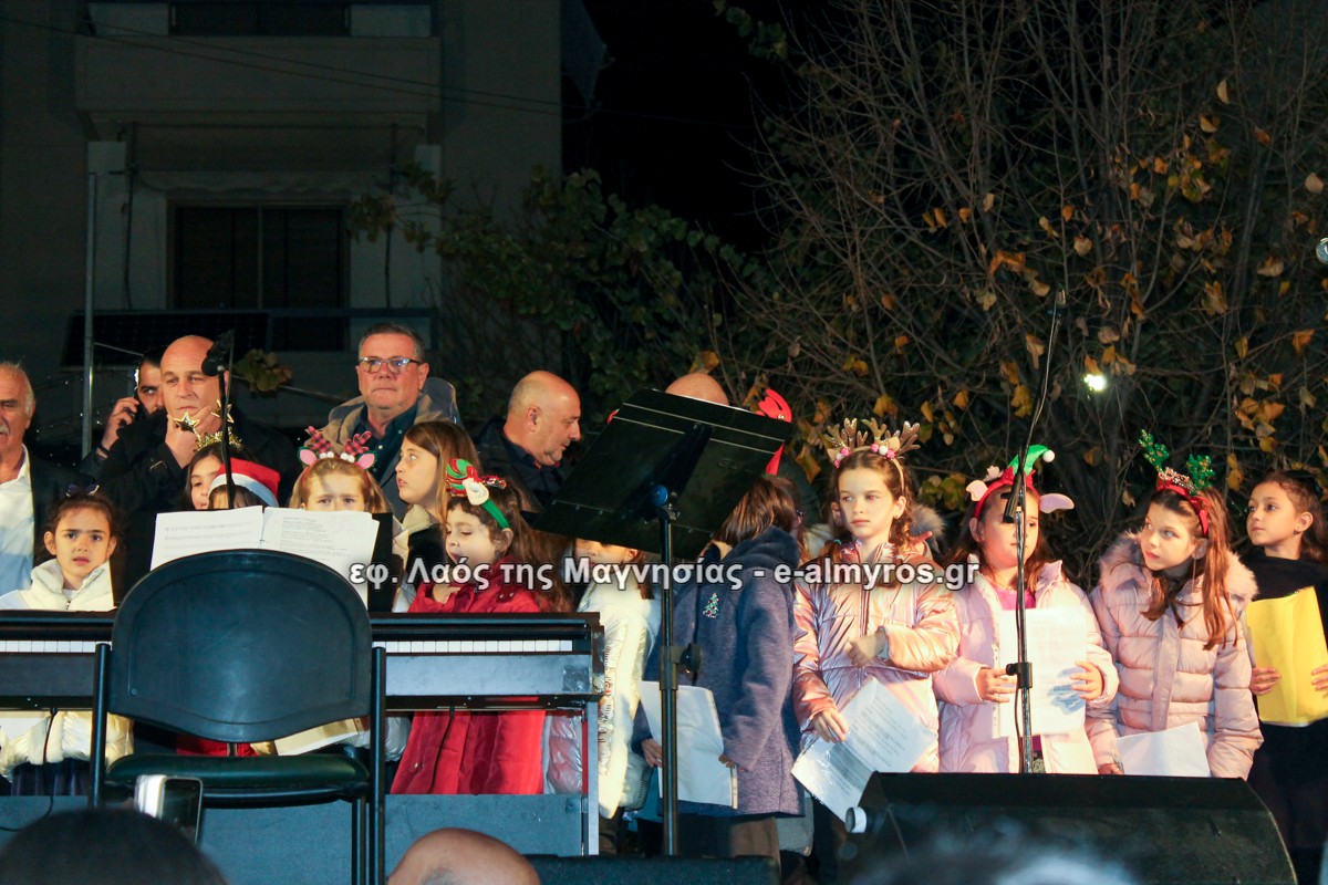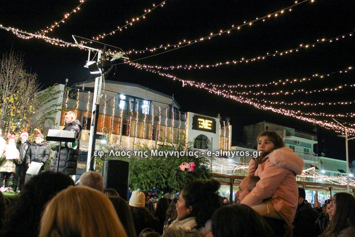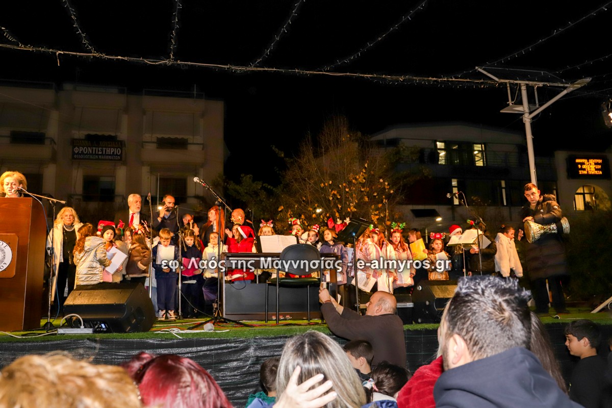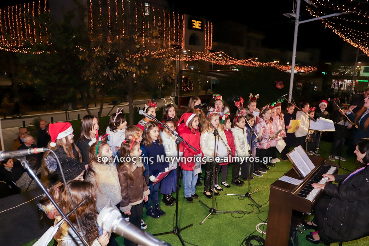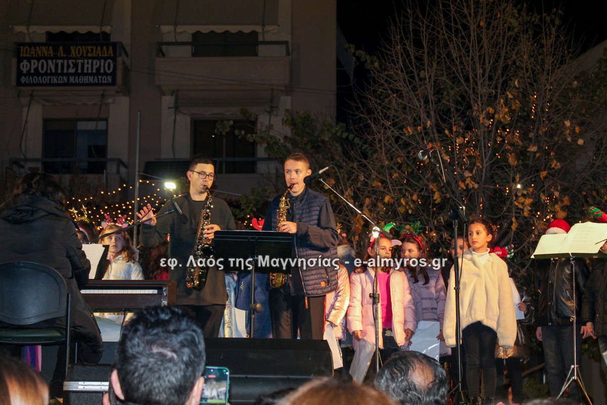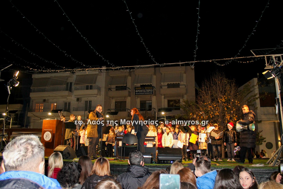 Μια μεγάλη γιορτή στήθηκε στην πλατεία Αλμυρού την Τρίτη το απόγευμα για την φωταγώγηση της πόλης και του Χριστουγεννιάτικου δέντρου που δεσπόζει στην πλατεία ανάμεσα στο θεματικό πάρκο του πινόκιο. Το πλούσιο μουσικό πρόγραμμα ξεκίνησε με την Νεανική – Παιδική χορωδία, ενώ ακολούθησαν η Μικτή Τετράφωνη Χορωδία και το Φωνητικό Σύνολο του Δημοτικού Ωδείου Αλμυρού, υπό τη διεύθυνση της μαέστρου Μαριάννας Σαμαρτζή, της Καλλιτεχνικής διευθύντριας Φρόσως Γαρδικλή και των καθηγητών Γατή Αθανασίου στο σαξόφωνο και κλαρινέτο και του Κουσιόπουλου Δημητρίου στο φλάουτο. Η Φιλαρμονική ορχήστρα του Δήμου Αλμυρού υπό την καθοδήγηση της Μαρίας Αγγελή, μας χάρισαν χριστουγεννιάτικη μουσική διασχίζοντας τους δρόμους της πόλης μας.